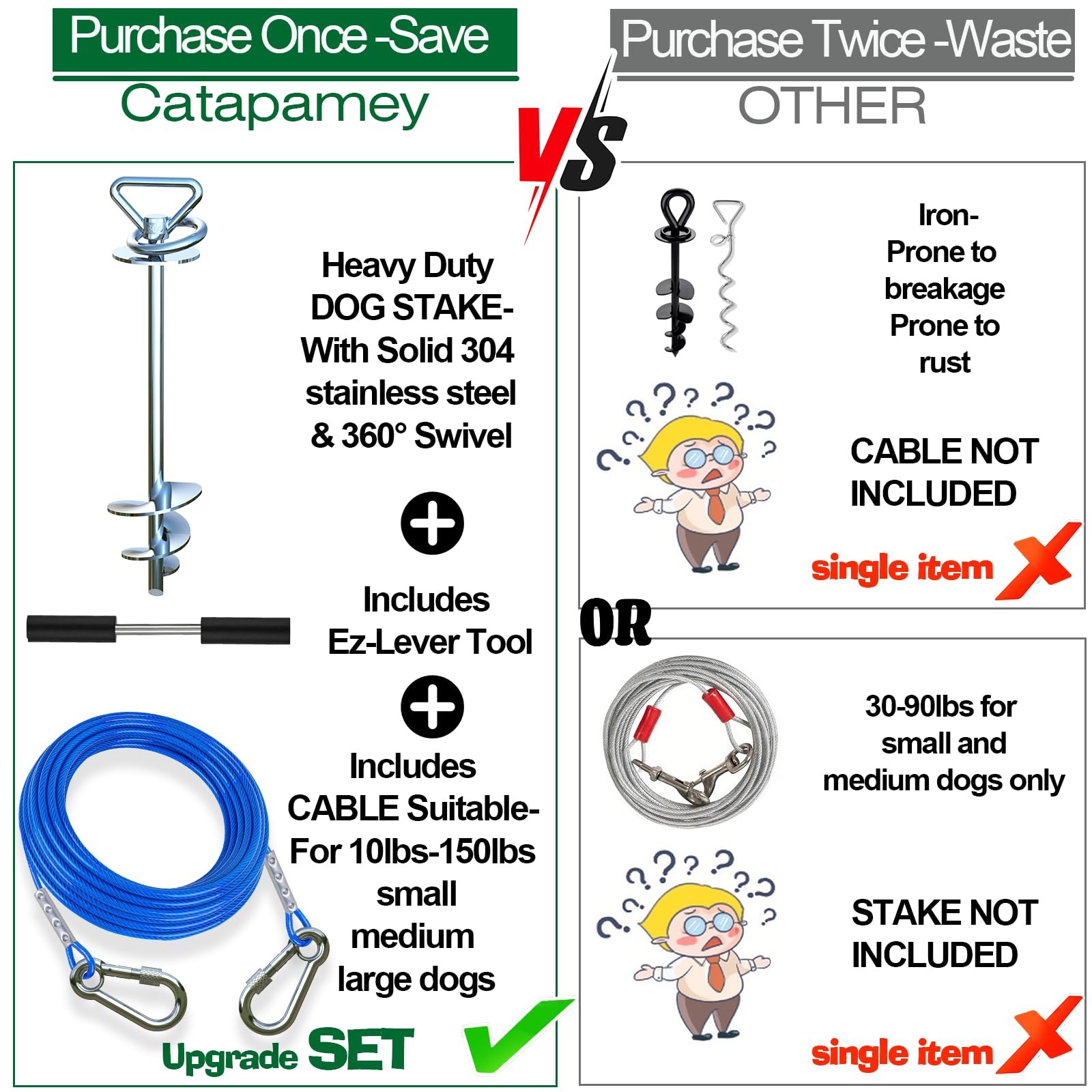 Dog Tie Out Cable and Stake,with 30FT Heavy Duty Cable,360 Swivel Run Anchor...