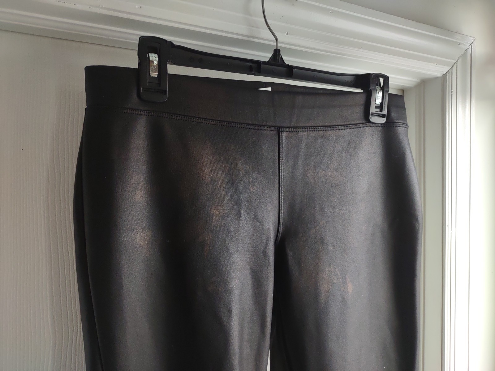 как выглядит Express Black Polyester/Spandex Leather Look Med. Stretch Leggings Pants READ фото