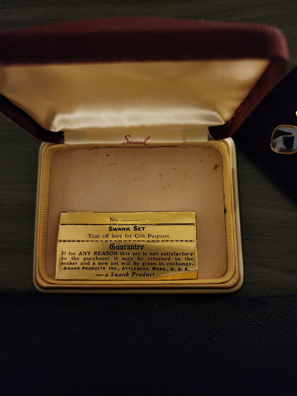 как выглядит Vtg SWANK PLATE Gold Black Tuxedo Shirt Studs Cufflinks Set In Original Gift Box фото