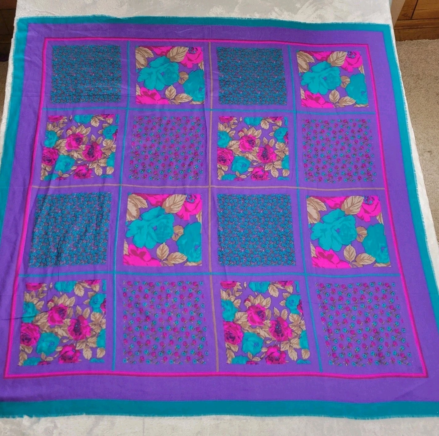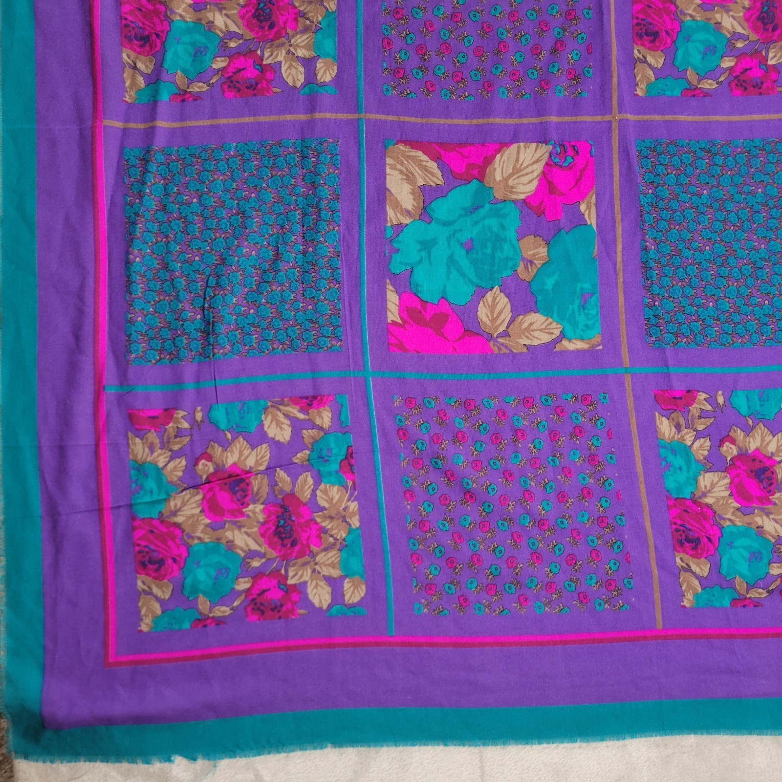 Vintage Colorful Floral Patchwork Scarf 46x46 Glentex Japan