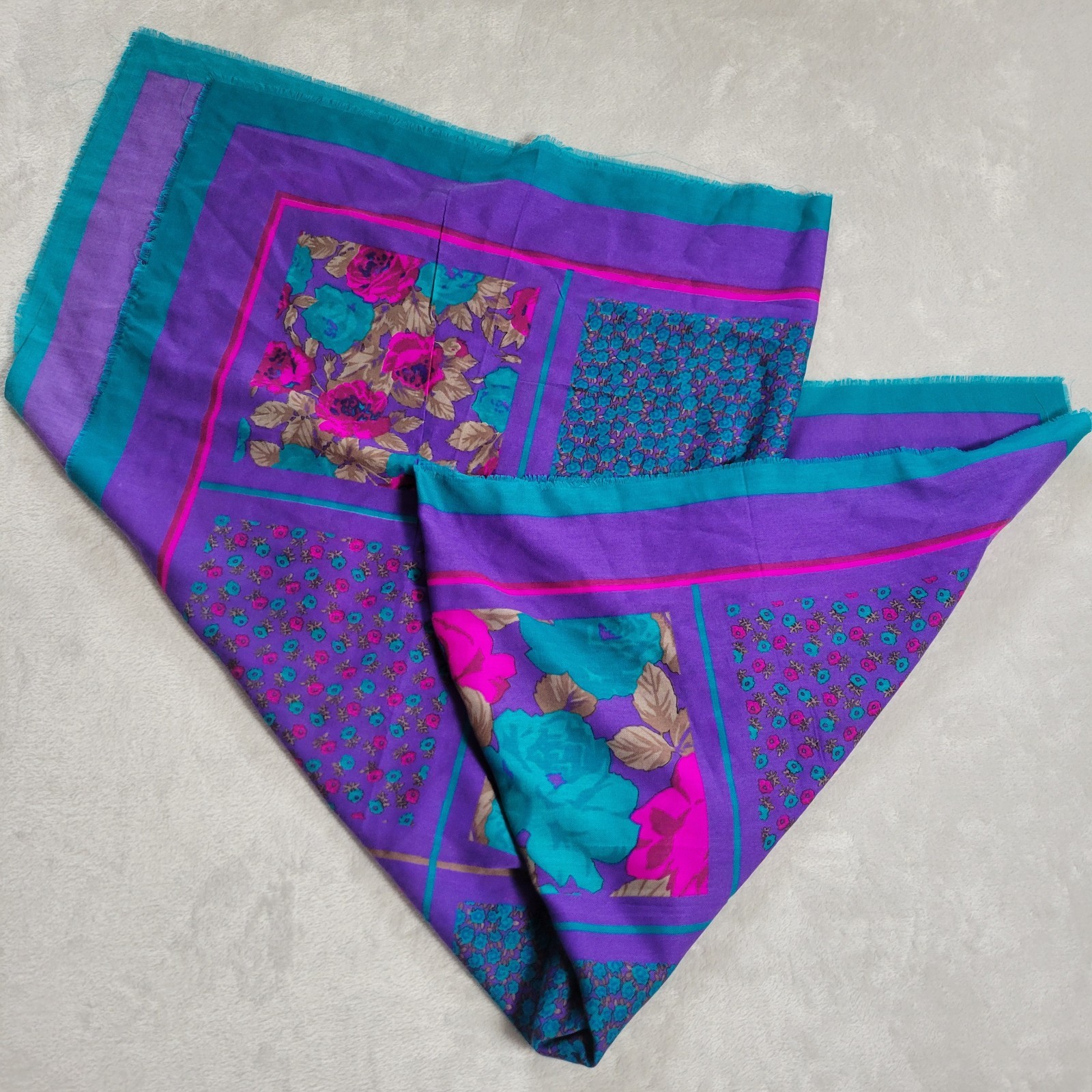 как выглядит Vintage Colorful Floral Patchwork Scarf 46x46 Glentex Japan фото