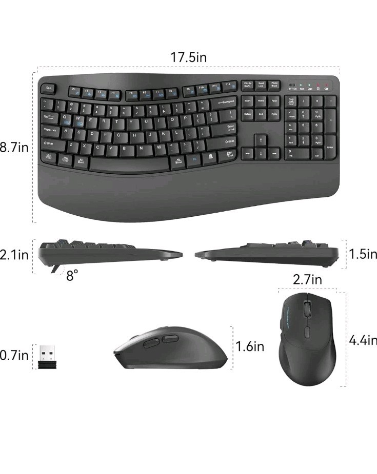 Ergonomic wireless keyboard and mouse combo, New Open Box By Raccazr