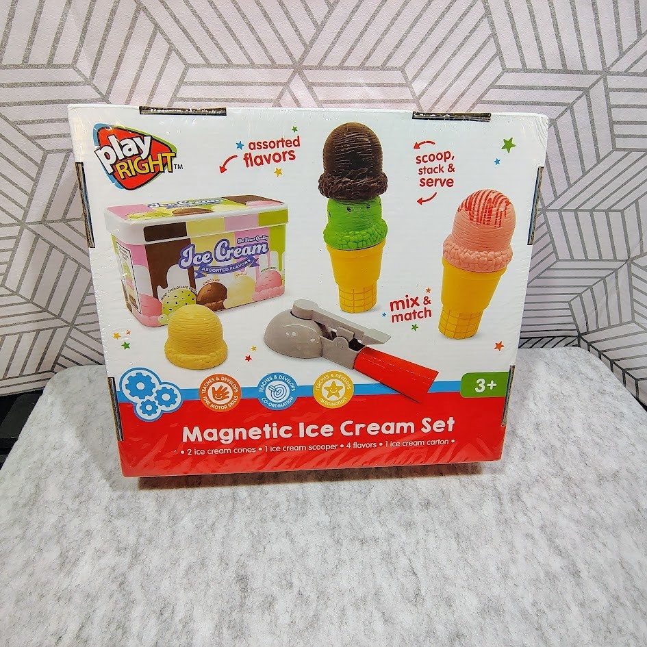 Play Right Magnetic Ice Cream Set 8pc Pretend Play Toy Scooper Cones Ages 3