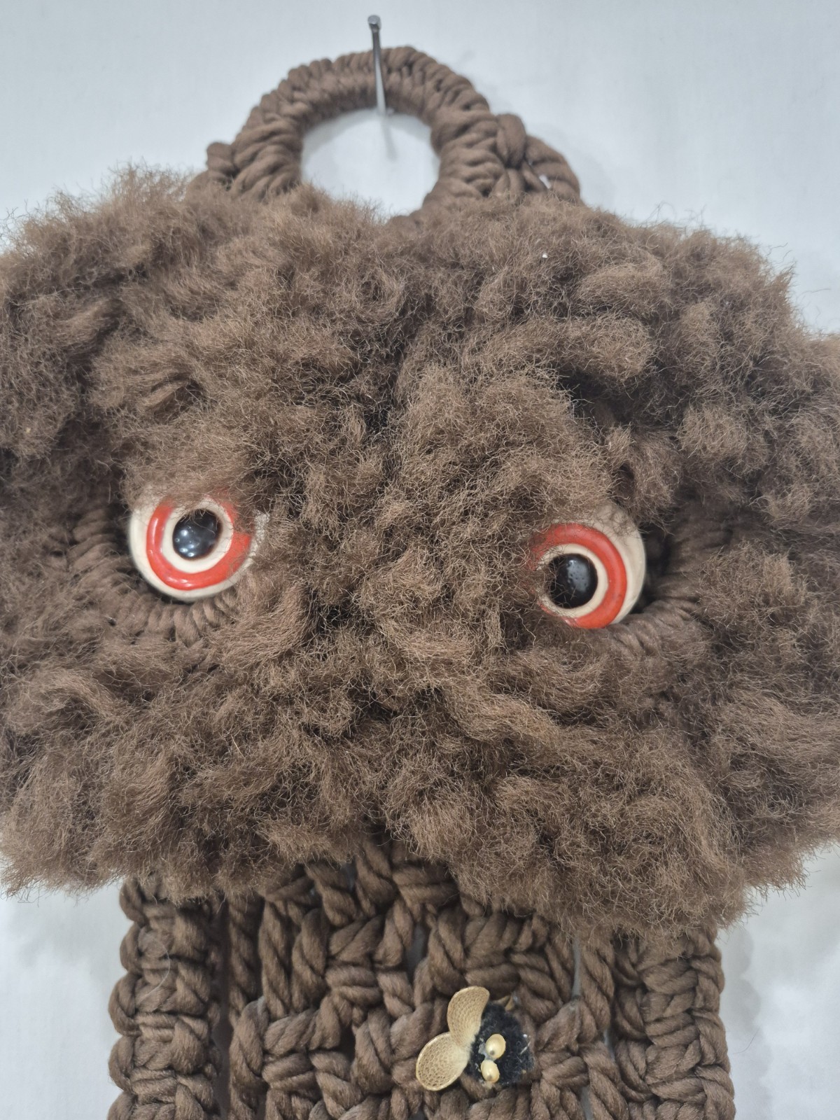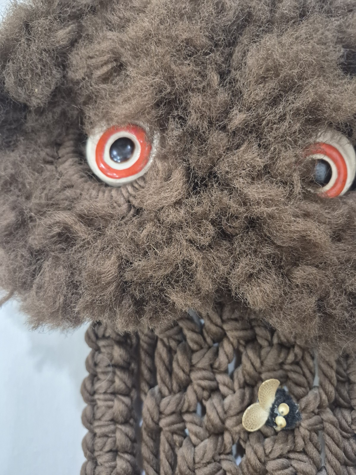 • Vintage 1970s Macrame Owl Wall Hanging Boho Retro Handmade Brown Large