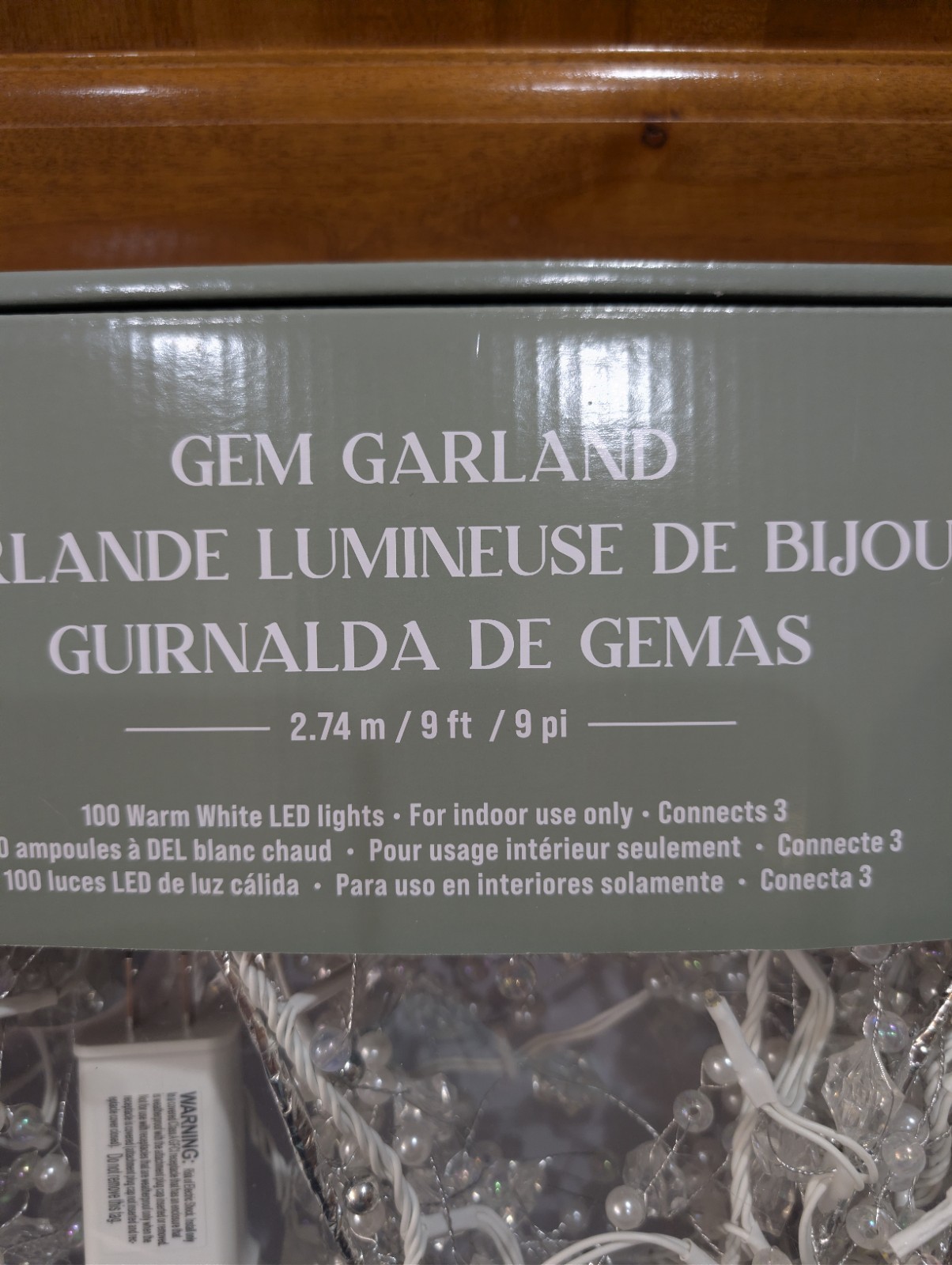 CHRISTMAS XMAS GEM GARLAND WITH LIGHTS PRE LIT INDOOR LIGHT UP 100 LEDs 9 FT NEW