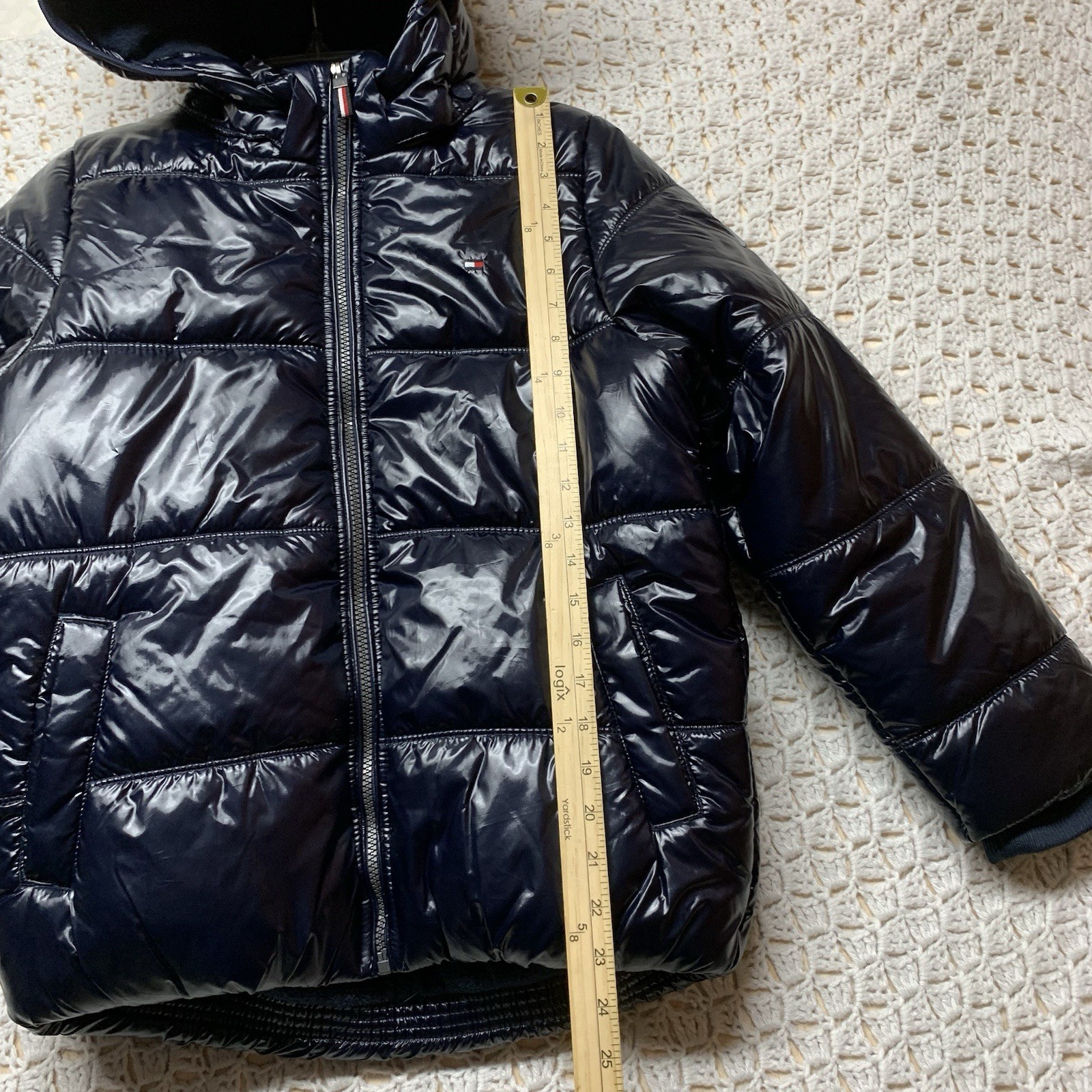 как выглядит Tommy Hilfiger Puffer Coat Jacket Boys M 12/14 Black Hoodie Fleece Full Zip фото