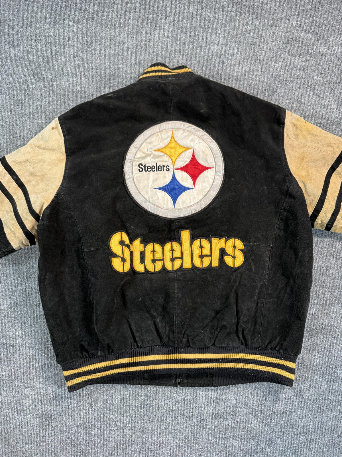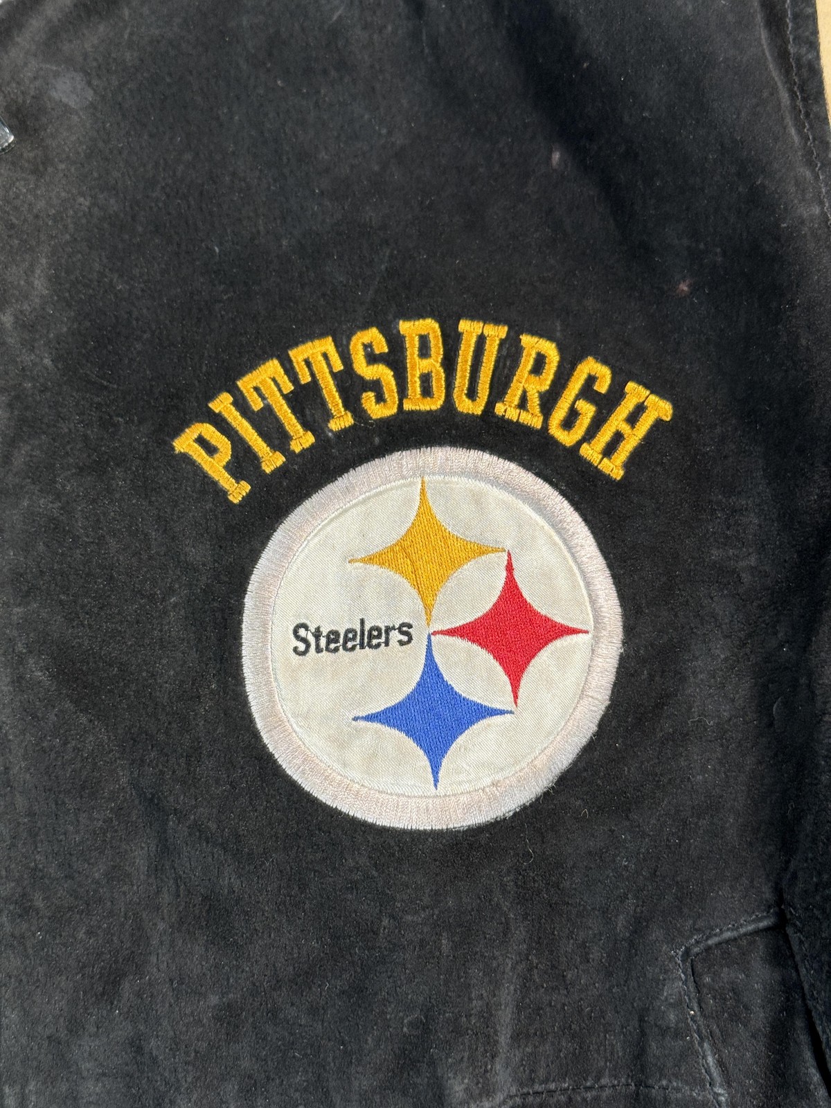 • Vintage Pittsburgh Steelers Jacket Mens Large Black NFL Football Leather Bomber