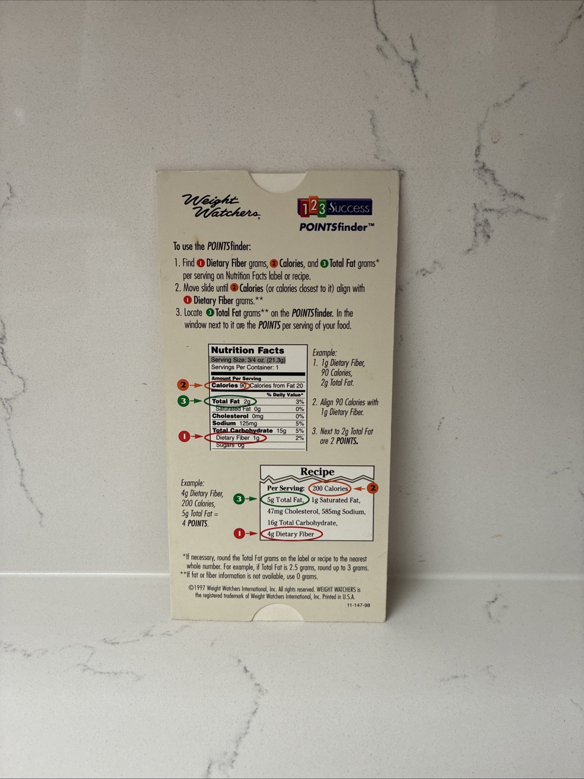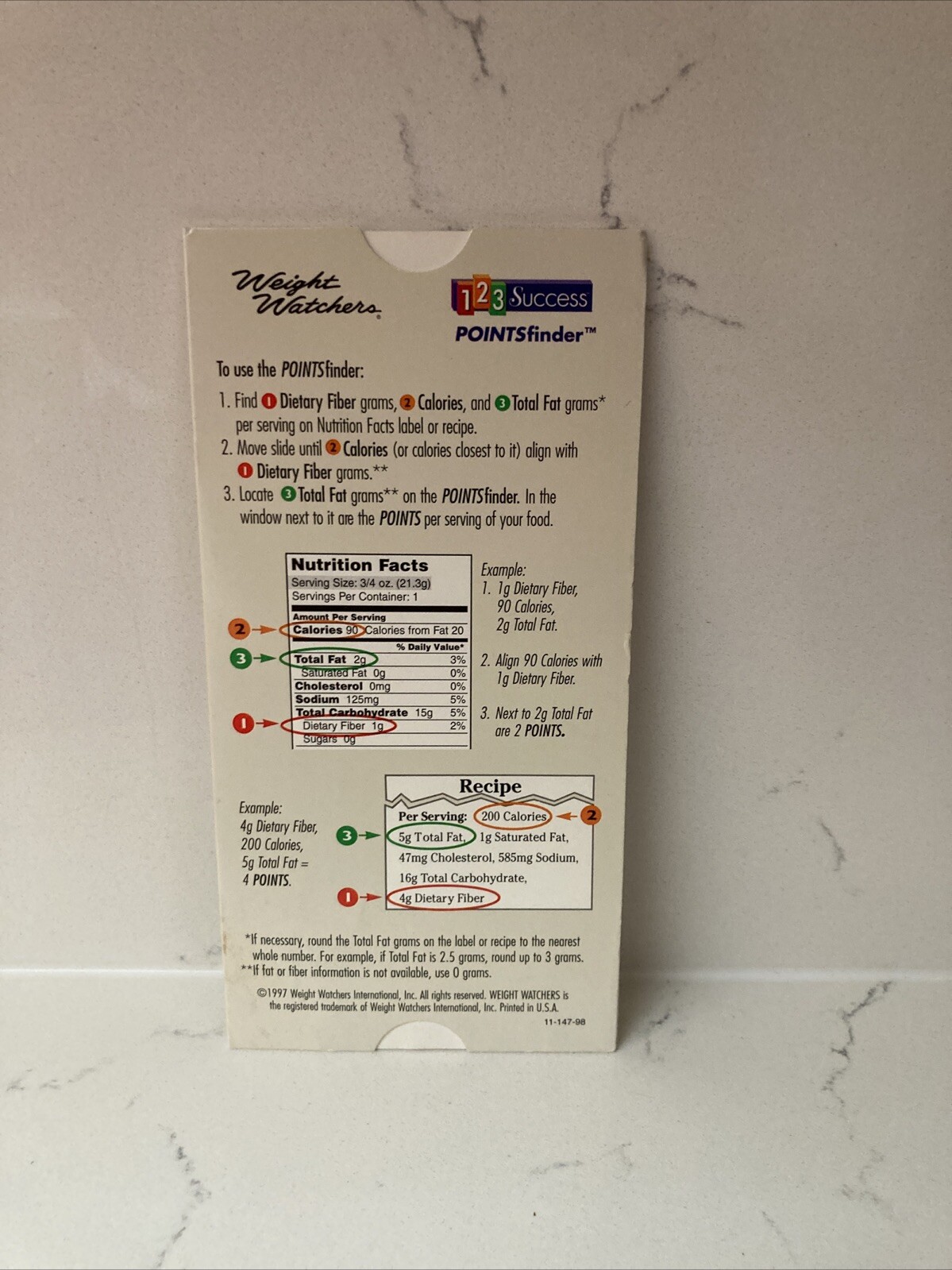 Weight Watchers My WW 123 SUCCESS Plan Points Finder Slide Calculator 1-2-3 Card