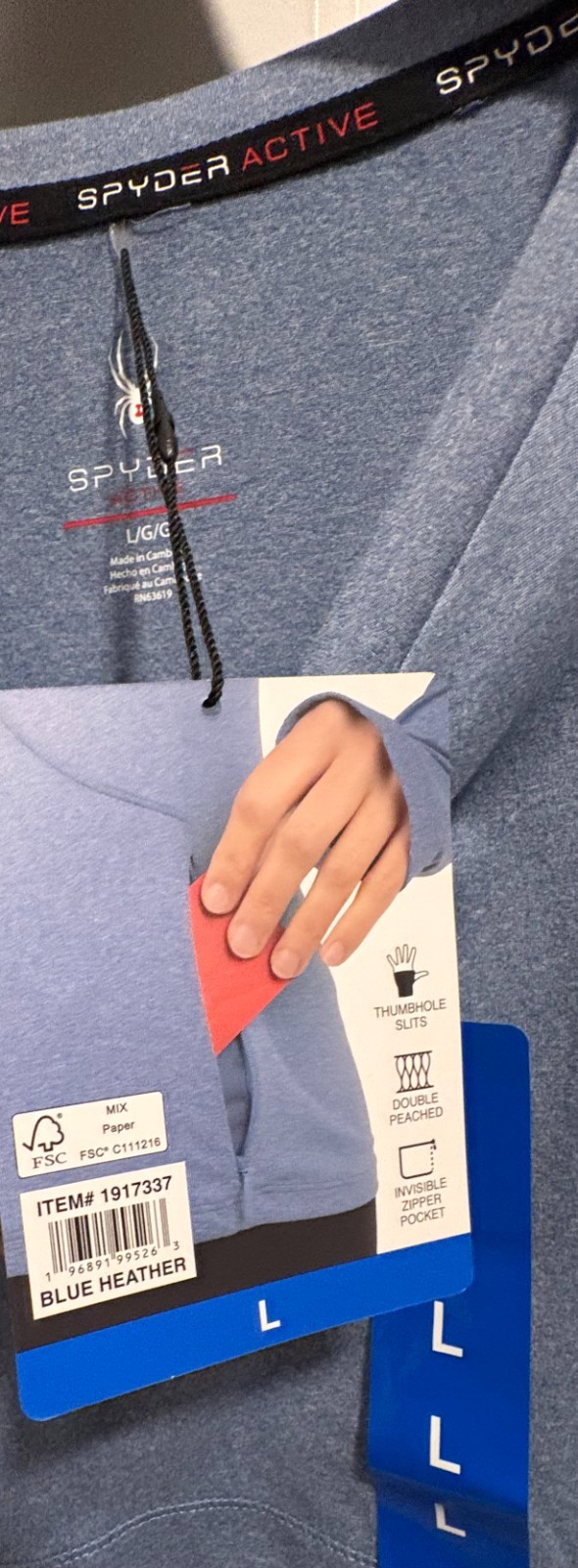 Spyder Active Top Women Size LARGE BLUE Long Sleeve Zipper Pocket Stretch NWT