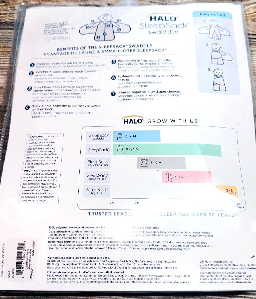Halo Sleep Sack Swaddle Small 3-6 Months Micro Fleece White Polka Dots NEW