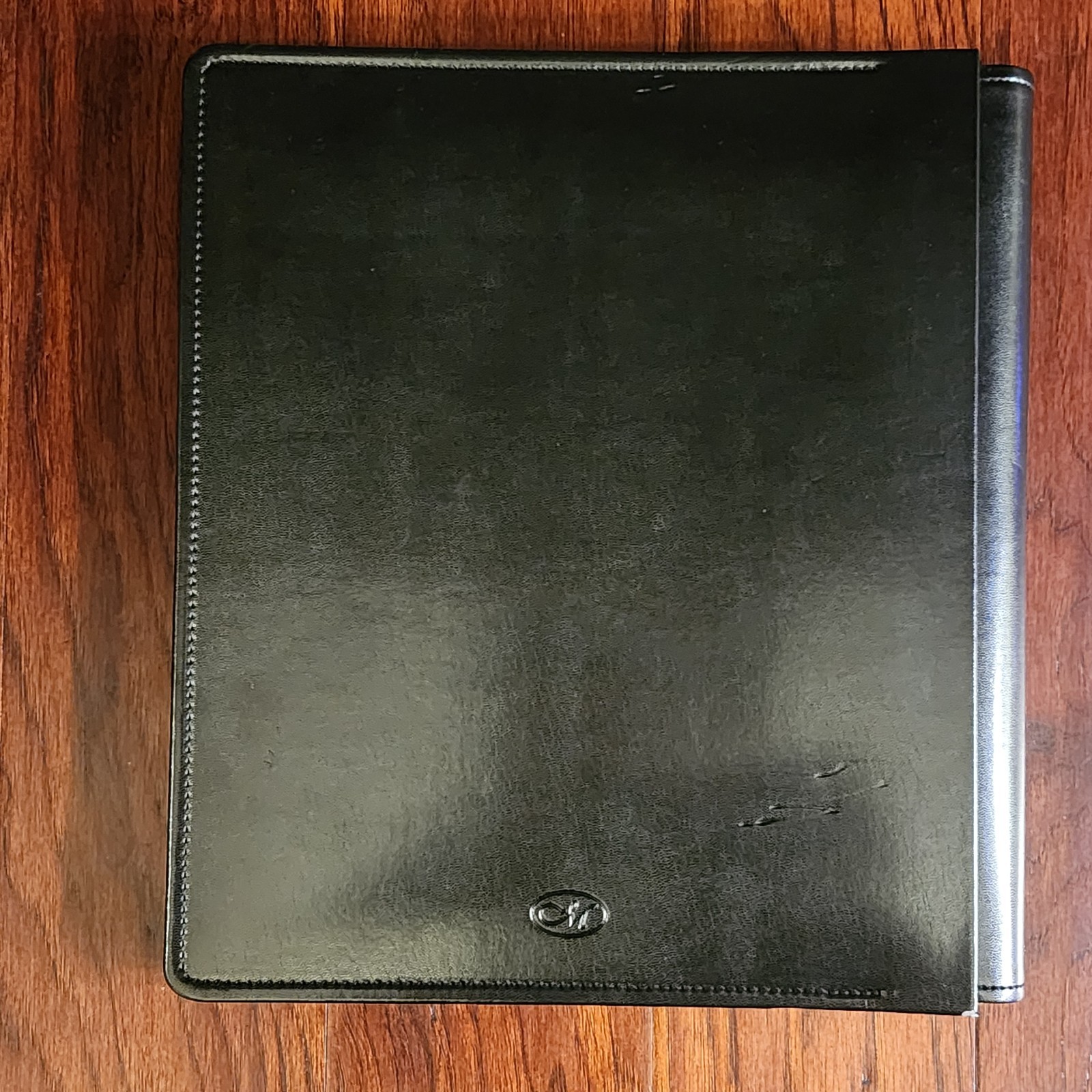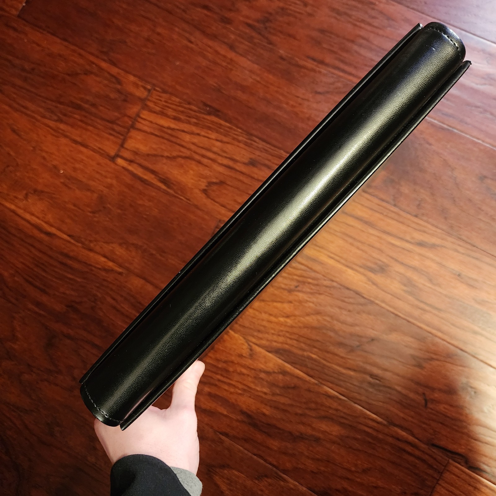 как выглядит Creative Memories 14x12 Flex-Hinge Album Cover Black Faux Leather 3 Strap flaws фото