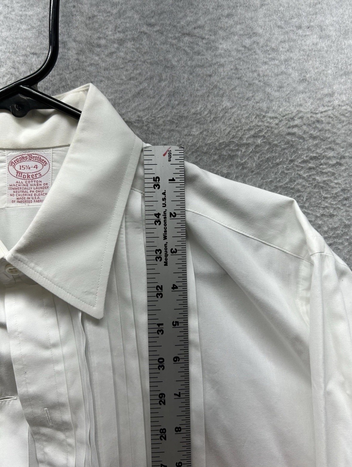 как выглядит Brooks Brothers Dress Shirt Mens 15.5 Large White Made In USA Tuxedo Buttonless фото
