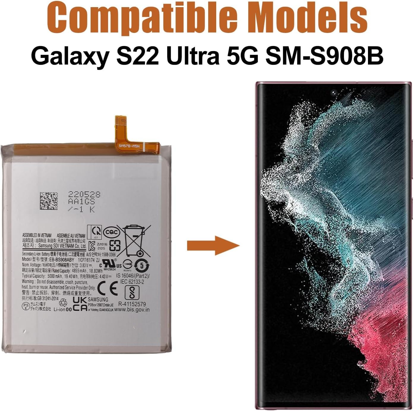 как выглядит 5000mAh EB-BS918ABY Battery For Samsung Galaxy S23 Ultra 5G S918 фото