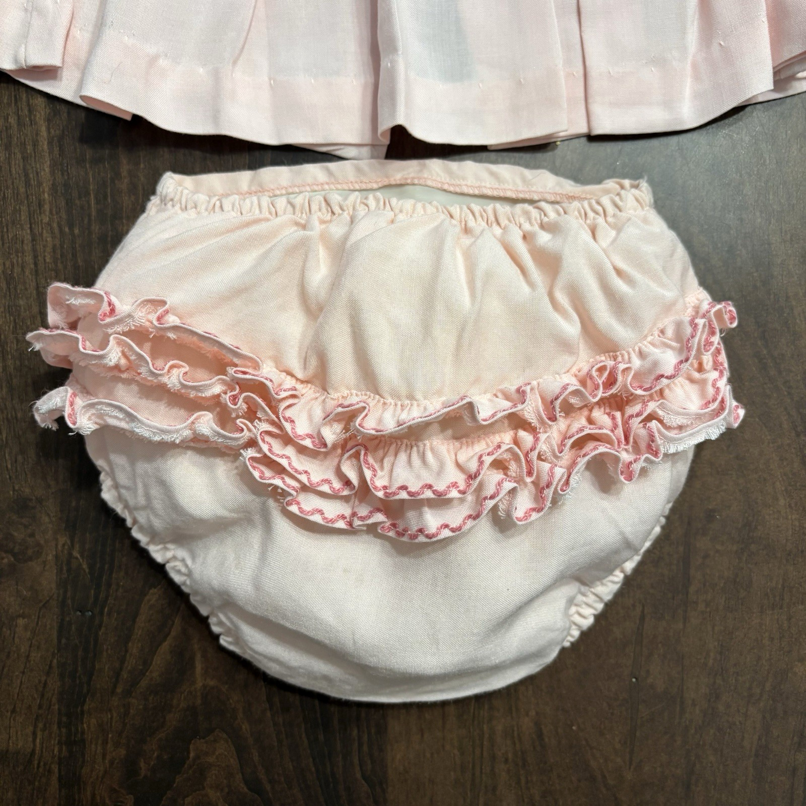 Vtg 50s Nanette Pink Dress 2 pc set Baby Girl Ruffle Bottoms bloomers USA Infant