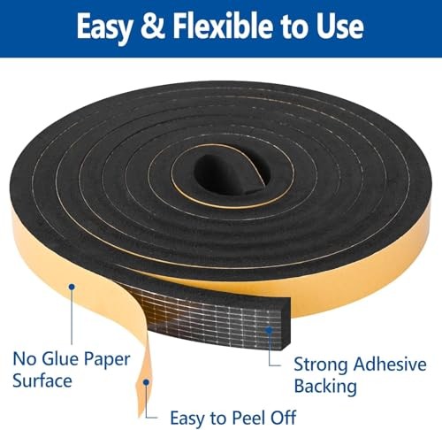 Self Adhesive Foam Tape Weatherstrip 1/2In x 1/4In x 1/2in x 1/4in x 16.5Ft