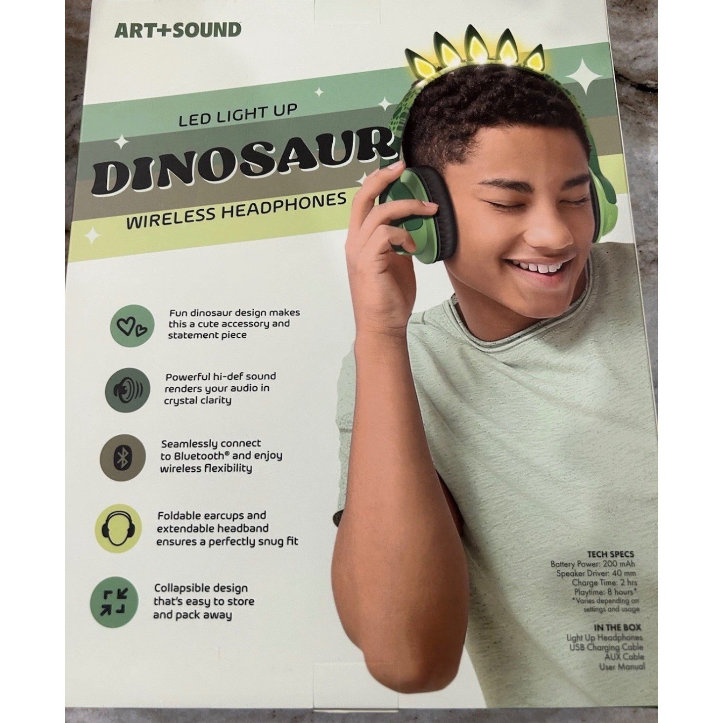 Art Sound LED Light Up Dinosaur Wireless Headphones for Kids Bluetooth