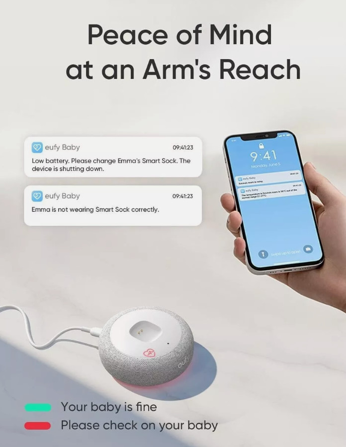 как выглядит Eufy Baby Smart Sock S320 Smart Baby Monitor for Baby 24 Hours E8340132 фото
