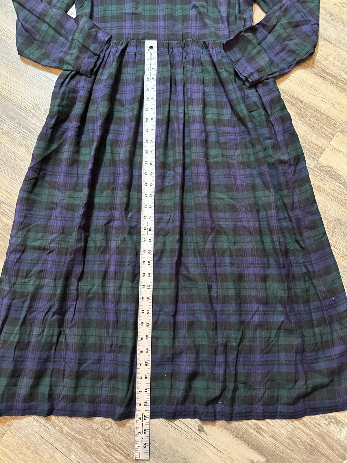 как выглядит Vintage Plaid Dress Country Wear Clothing Co 14W Rayon Blue Green фото