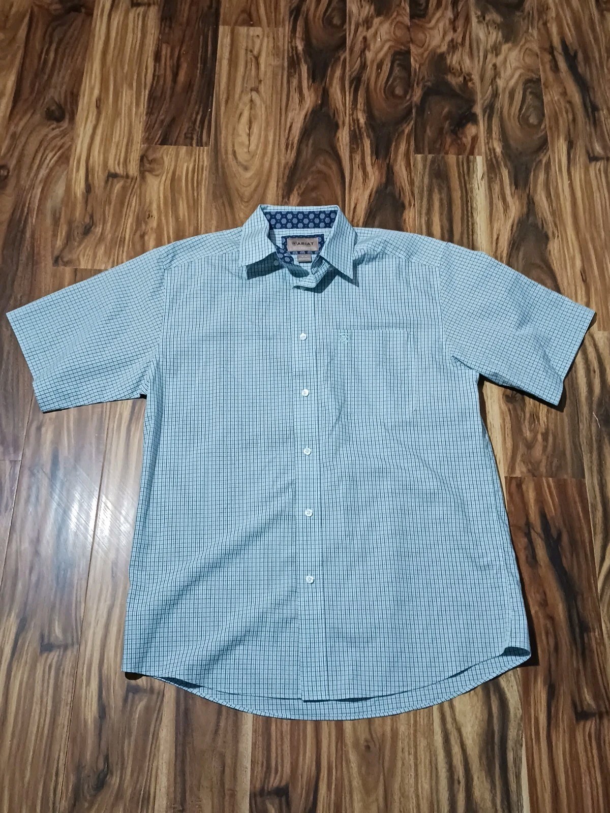 Ariat Wrinkle Free XL Casual Button Up Plaid Shirt Blue