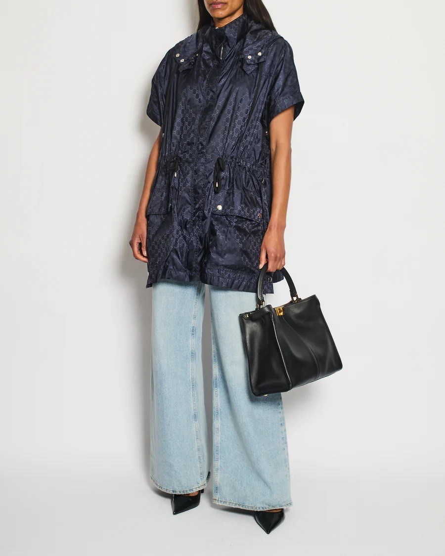 как выглядит Gucci GG nylon Jacquard Blue Hooded jacket 744314 - BNWT фото