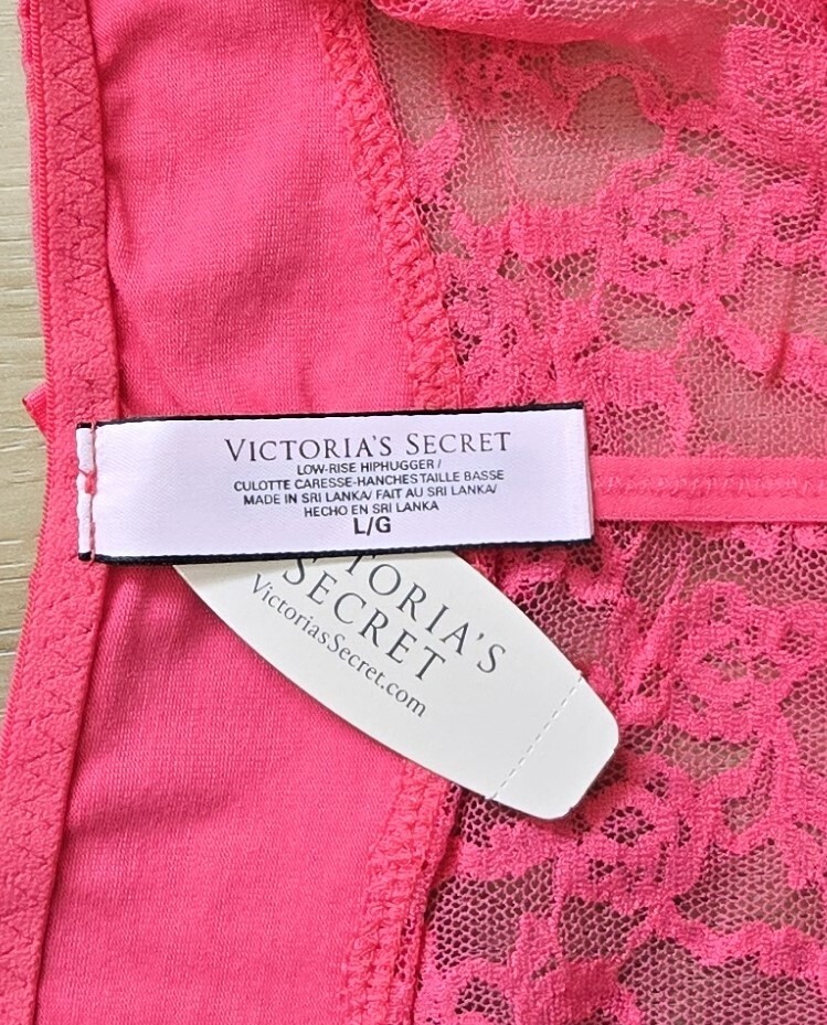 как выглядит NWT Vintage Victorias Secret Pink Cotton Ruched Lace Back Hiphugger Panties L фото