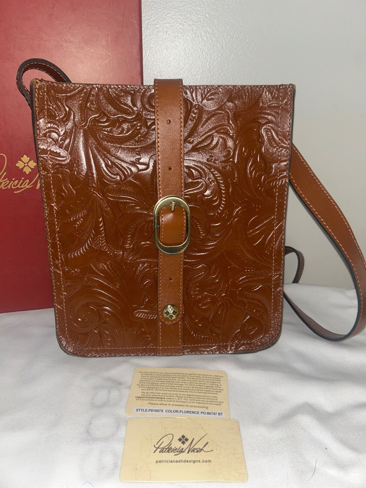 как выглядит NEW NWT PATRICIA NASH Venezia Box Tooled Leather Crossbody Bag in Florence фото