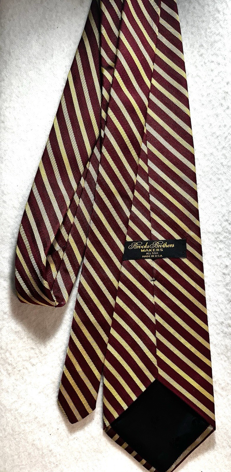 Vtg Brooks Brothers Makers USA Men's Burgundy Red Gold Stripe All Silk Necktie