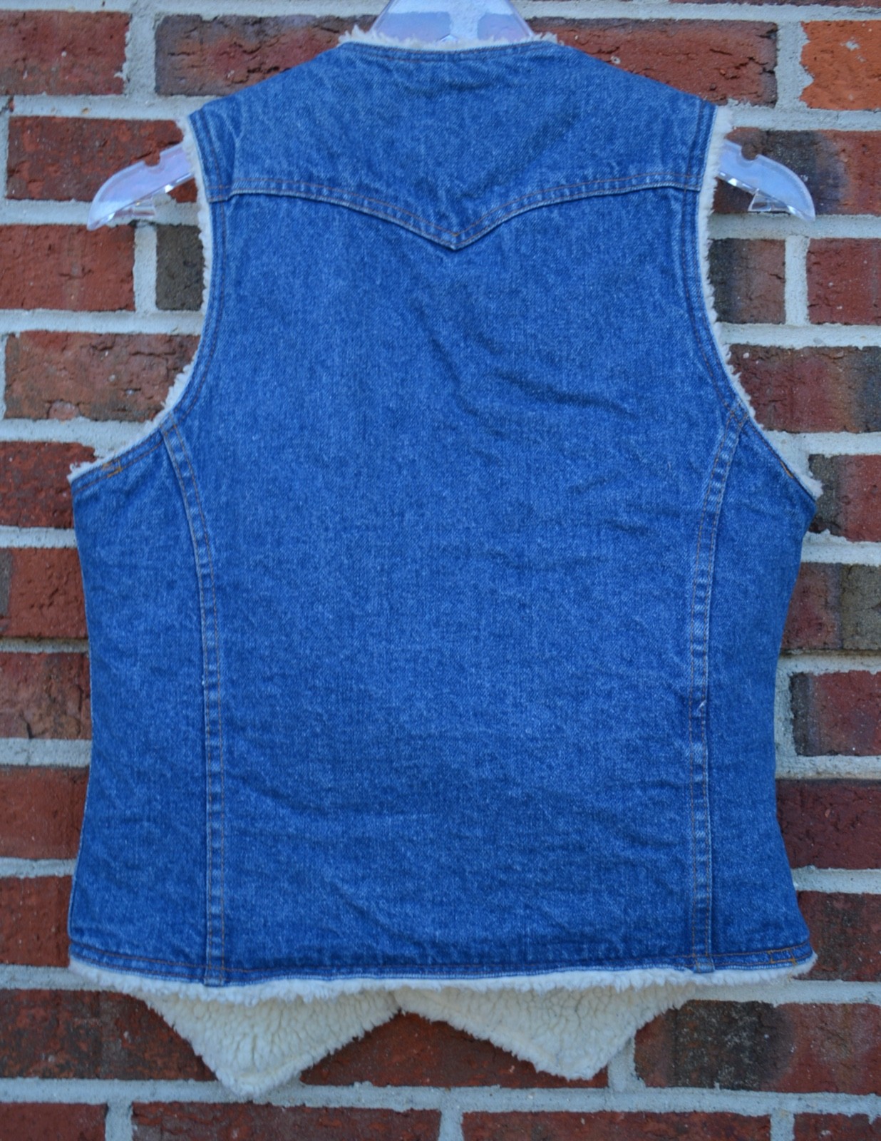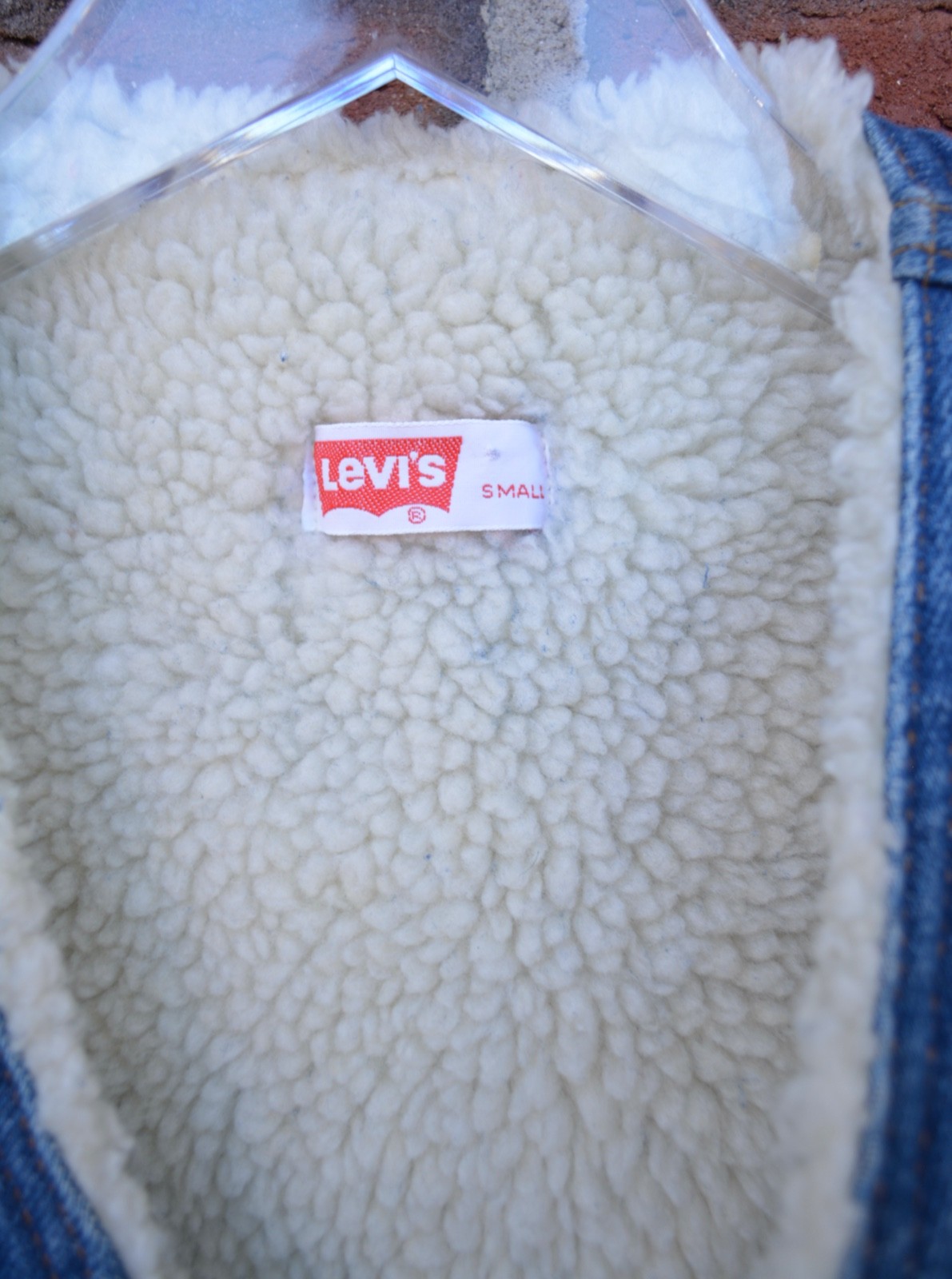 как выглядит Vintage Levis Womens Small Blue Denim Vest Sherpa Lined Orange Tab Made in USA фото