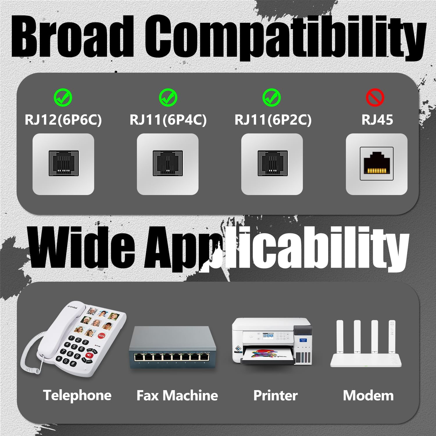 RJ12 6P6C 1 Female to 2 Female Telephone Line Splitters, Telephone Landline Cabl