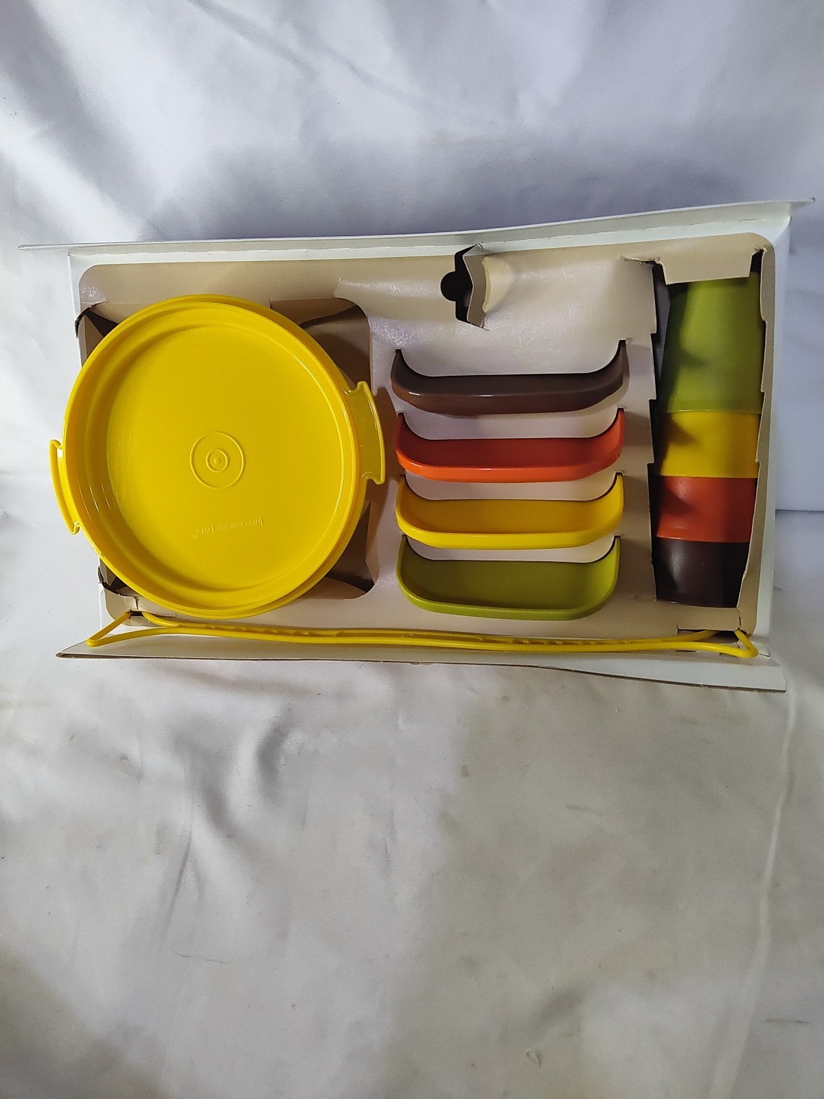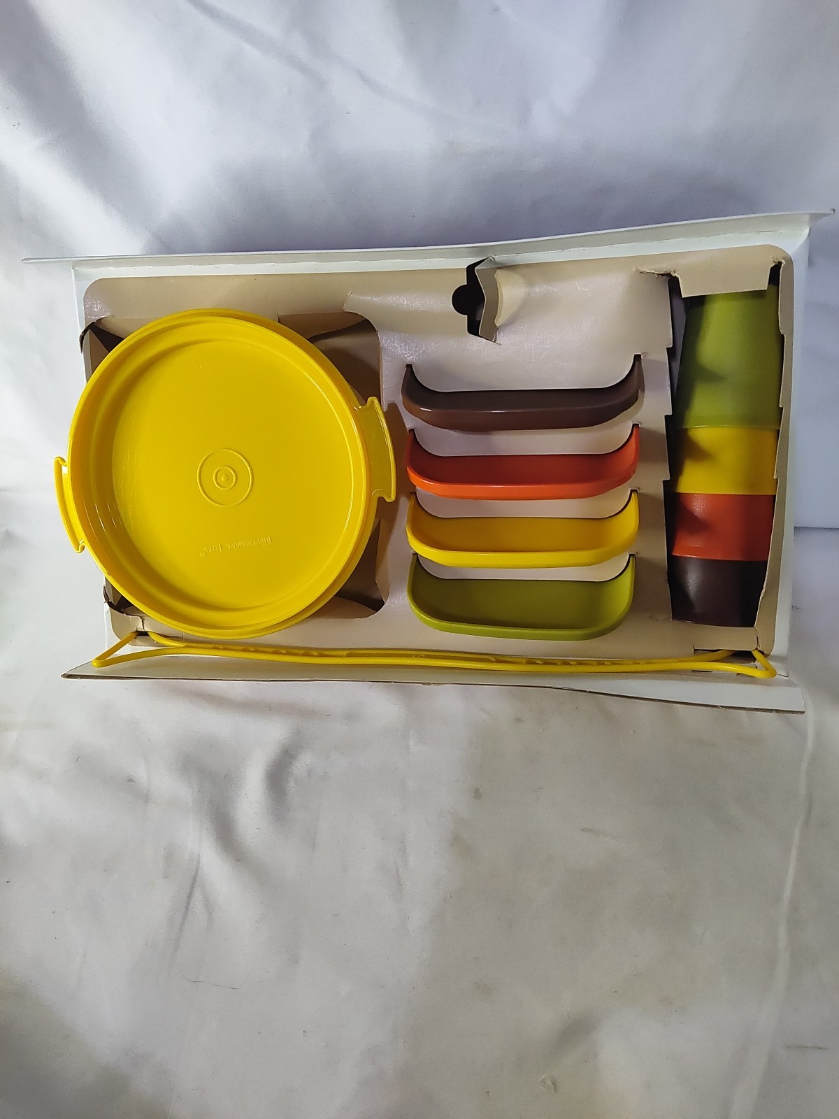 как выглядит Tupperware Toys 10 pc Mini-Party Set W/Box VTG 1980 Cake Carrier Plates Cups фото