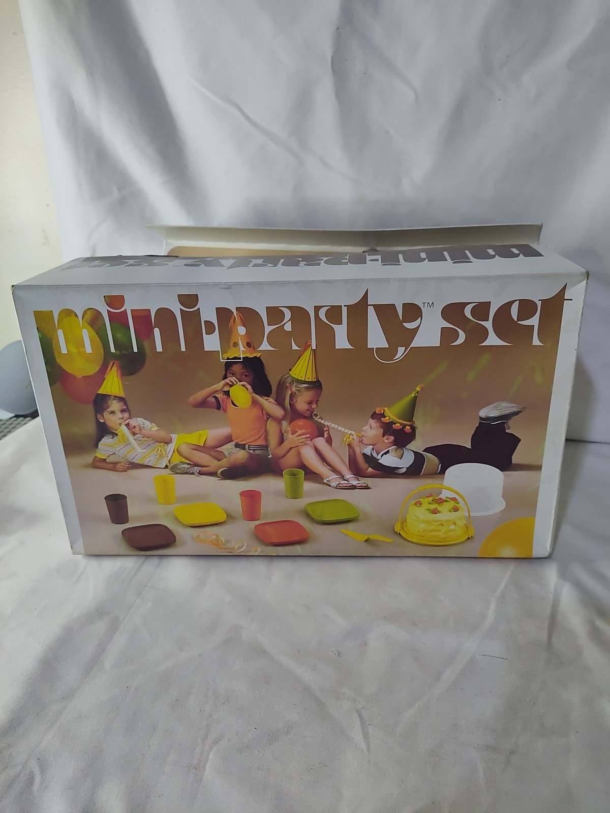 • Tupperware Toys 10 pc Mini-Party Set W/Box VTG 1980 Cake Carrier Plates Cups