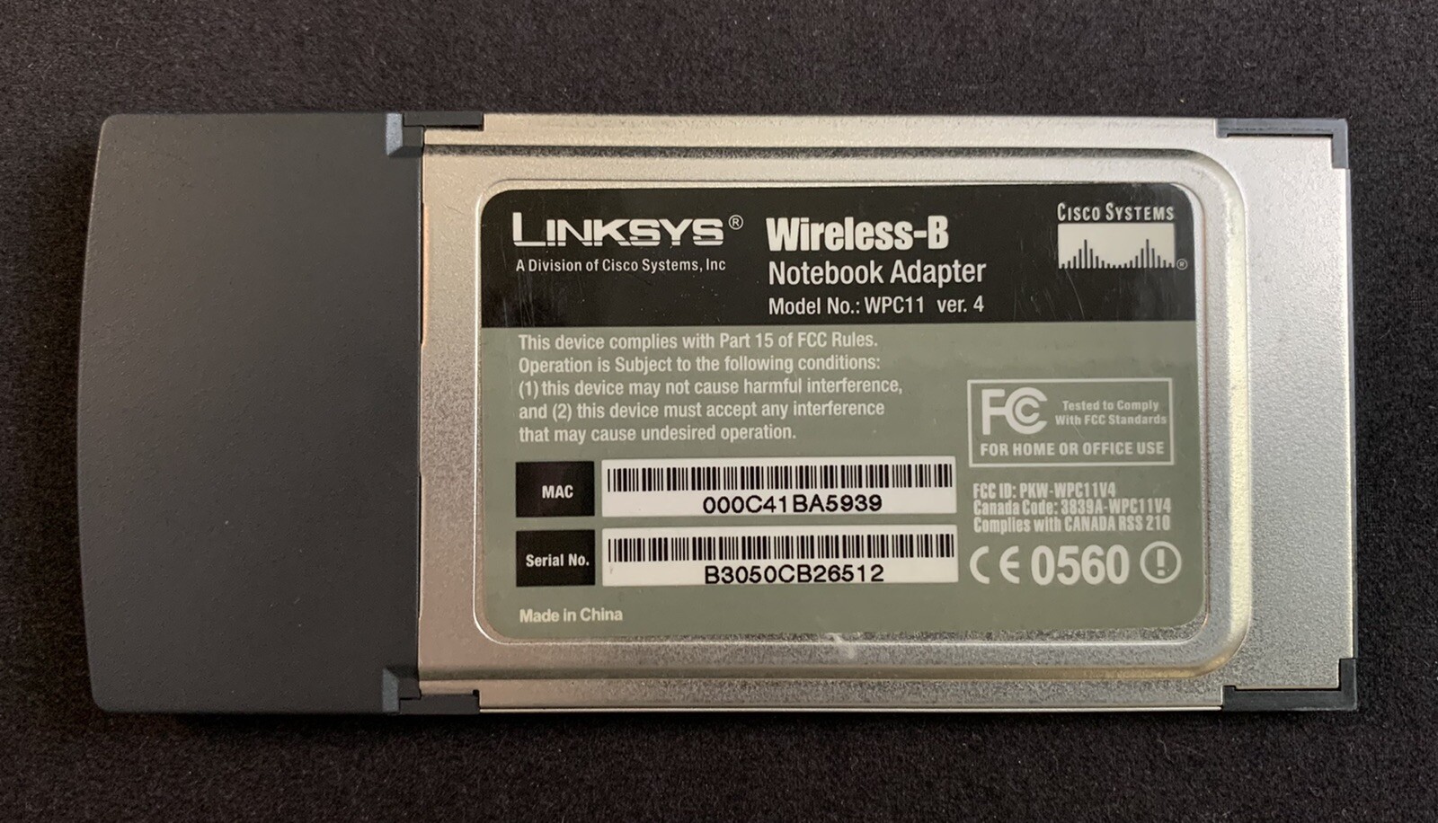 Linksys Wireless-B Notebook Adapter WPC11 Ver. 4