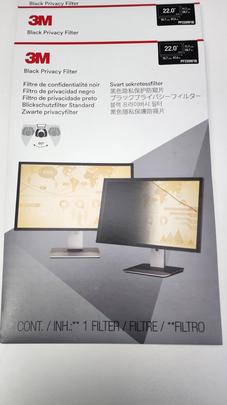 как выглядит 3M Black Privacy Filter for 22 inch Widescreen LCD Monitors PF220W1B Lot Of 5 фото