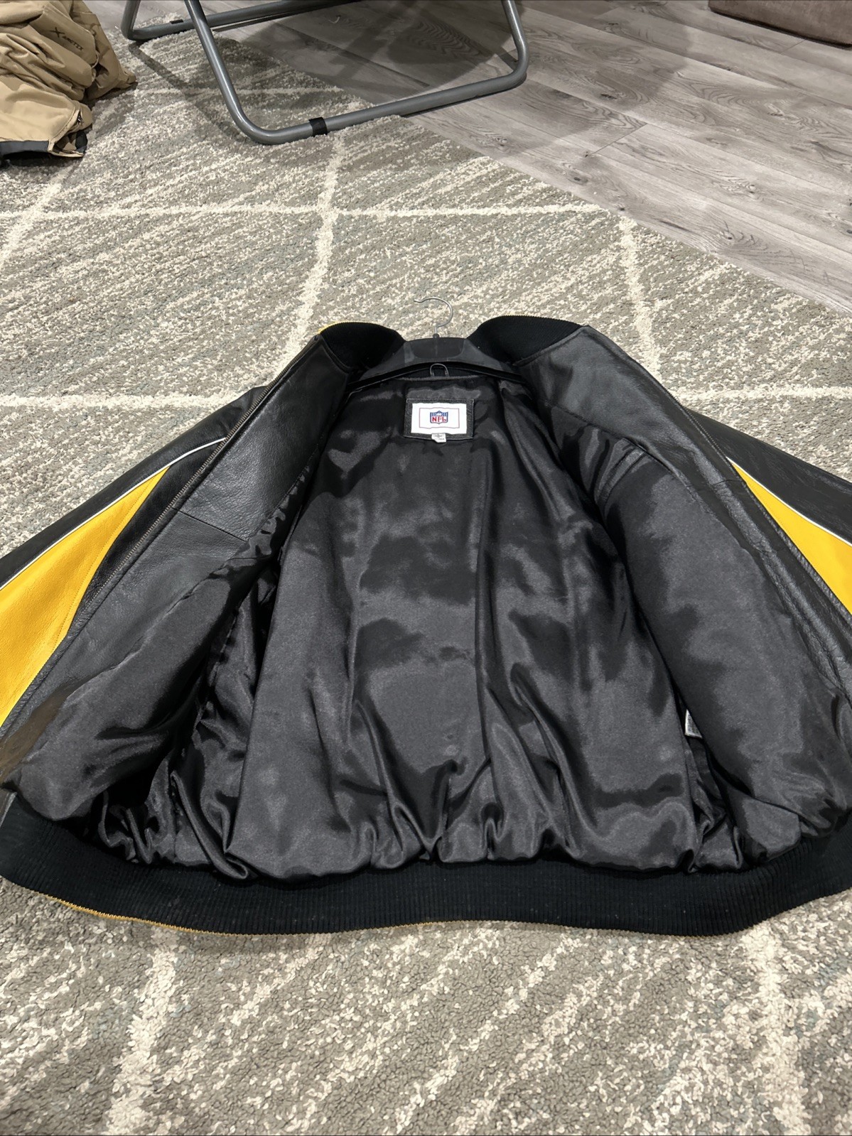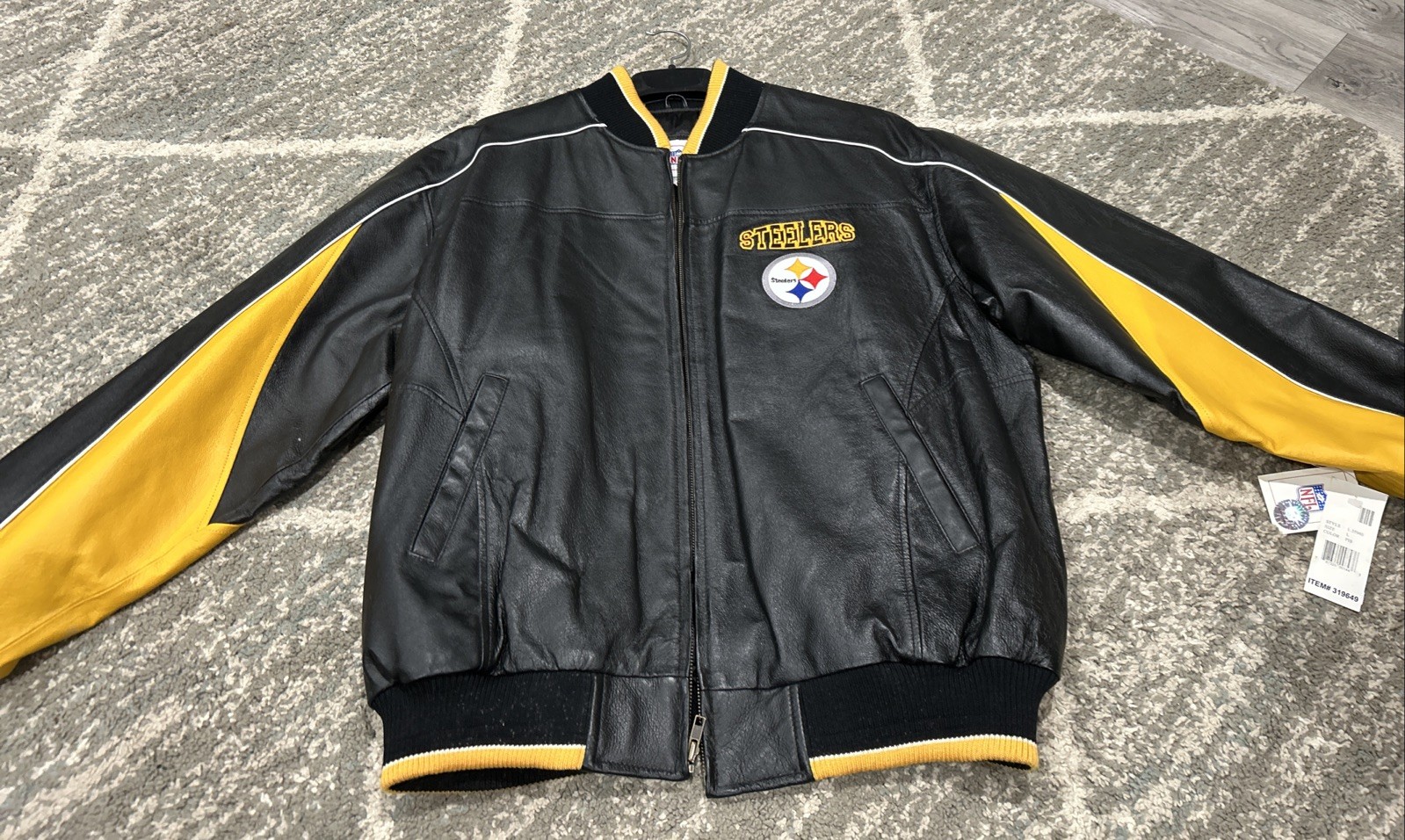 как выглядит Vintage Pittsburgh Steelers NFL 100 Leather Full-Zip Bomber Jacket Logo L - NOS фото