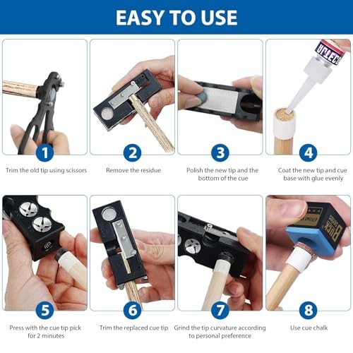 Included Components: 10 x Cue Tip, 11-in-1 Billiards Pool Cue Tip Shaper, 2 x Replacem