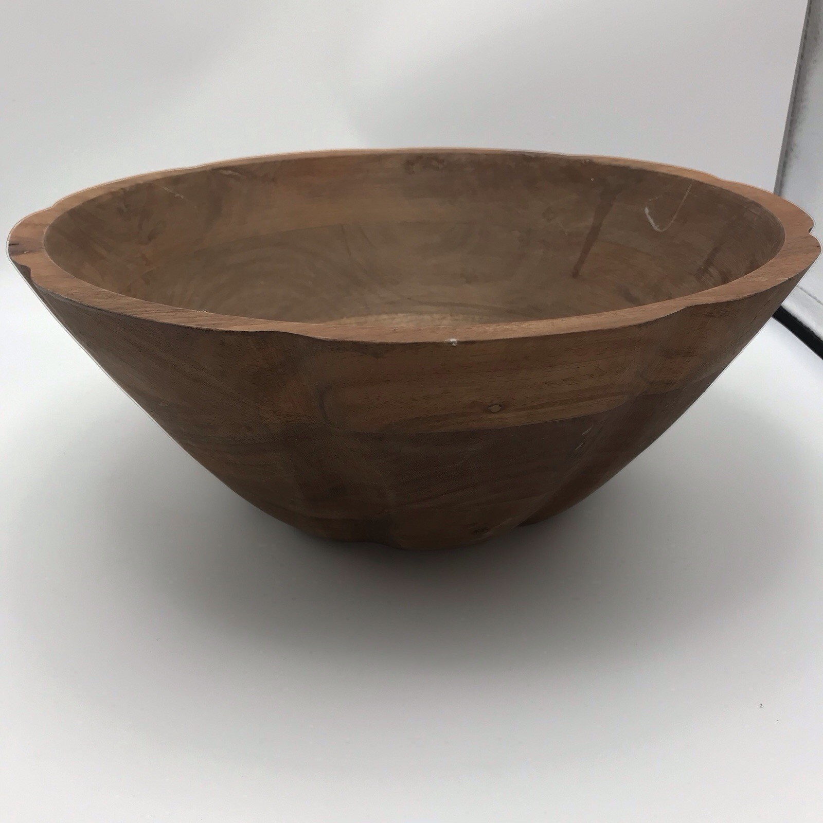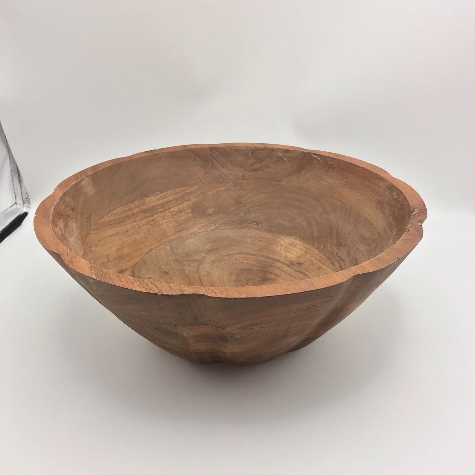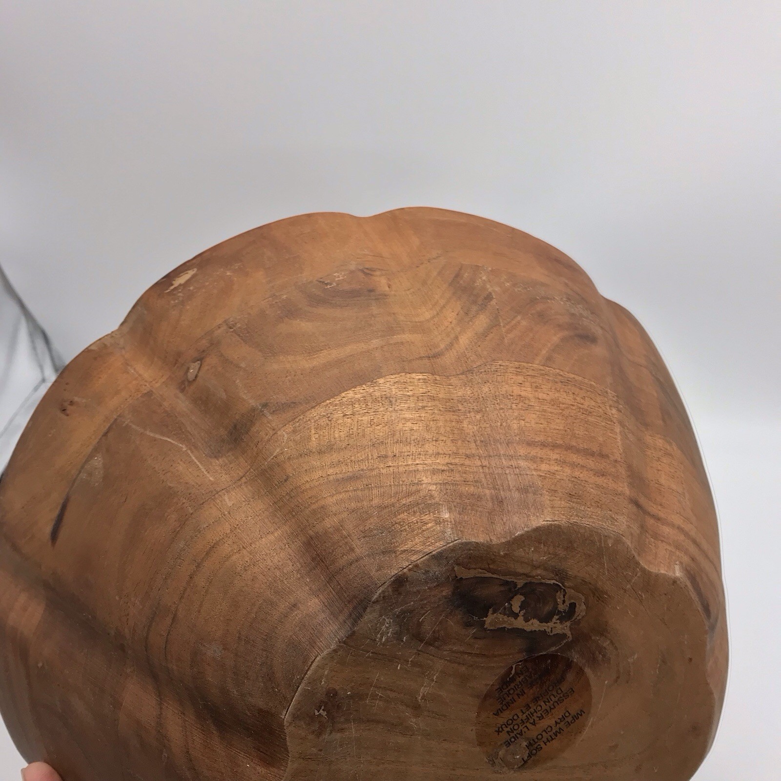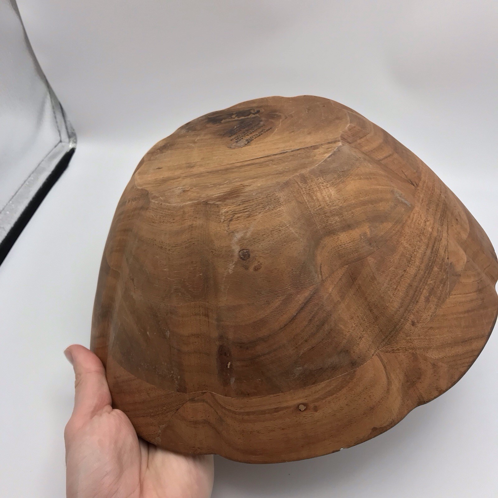 • Large 12in Hand Carved Wooden Bowl Rustic Organic Shape Decorative