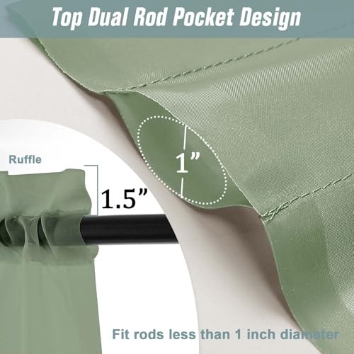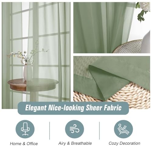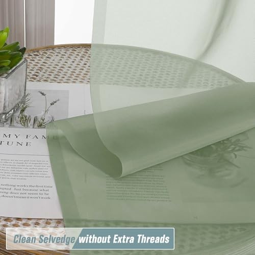 Sheer Curtains 90 Inches Long 2 Panels, 42W x 90L Pack of 2 Sage Green