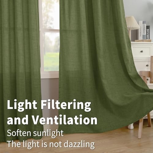 Dark Green Sheer Curtains for Living Room 72 52W x 72L Pack of 2 Olive