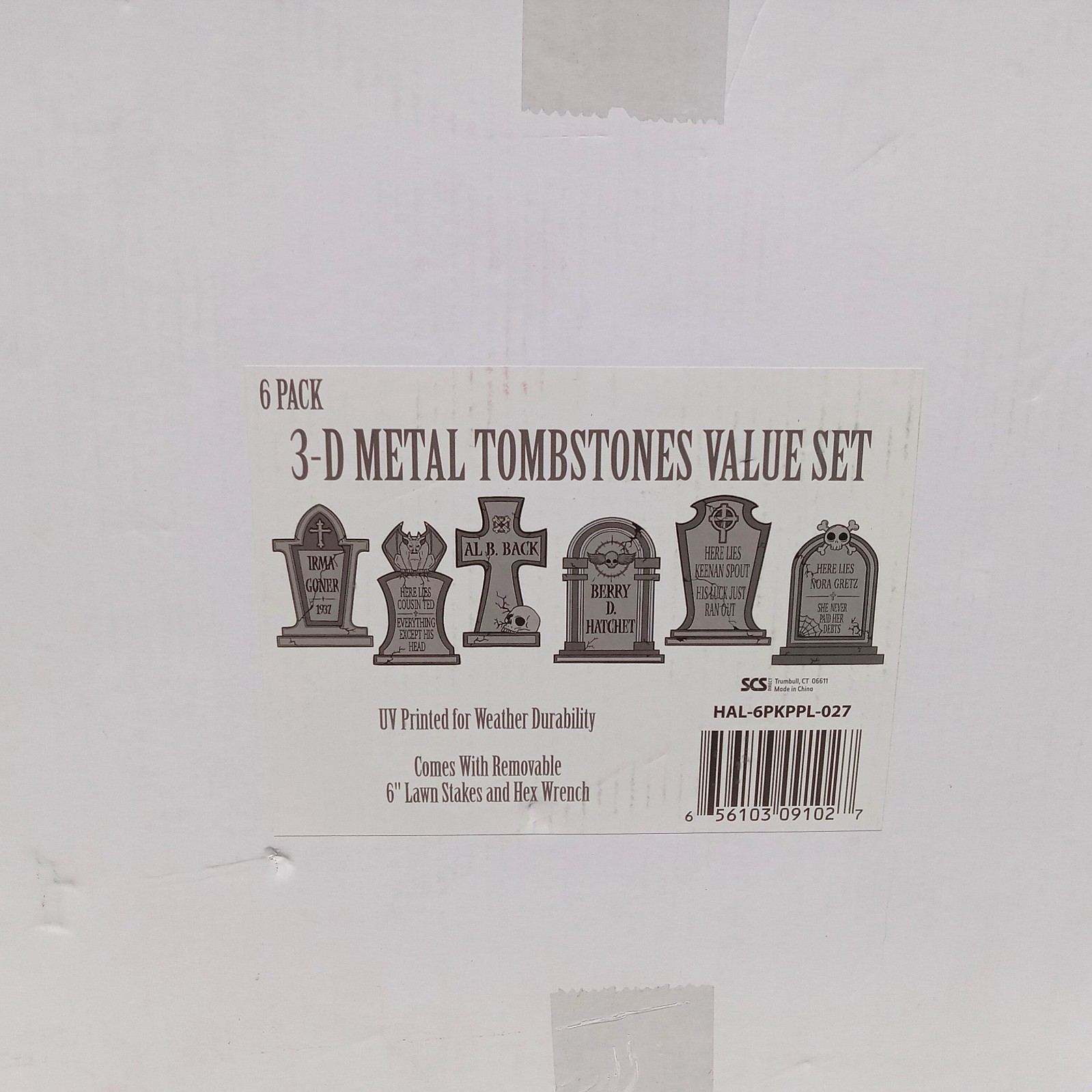 • Halloween Yard Decor 3D Metal Cemetery Tombstones Set of 6 Headstones 16 inch