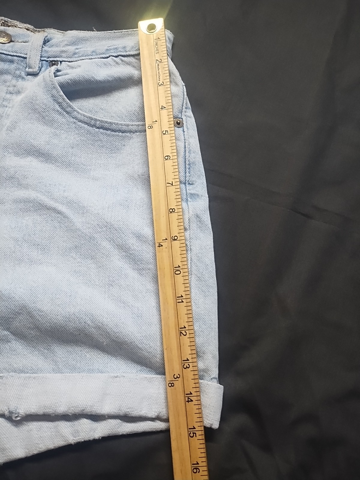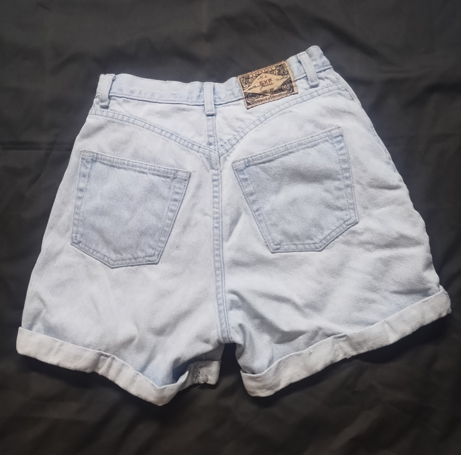 как выглядит Vintage Express EXP Button Fly High Waist Cuffed Jean Shorts Size 7 Blue 90s Y2K фото