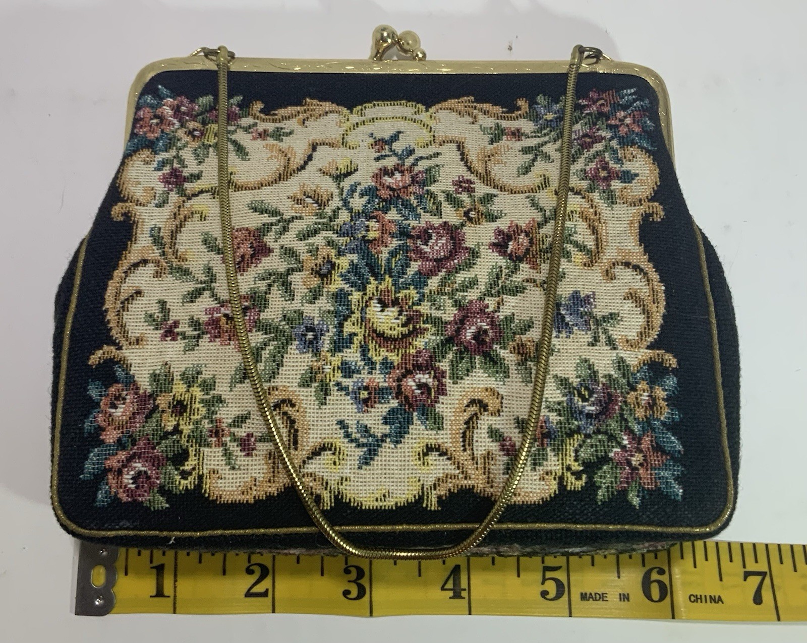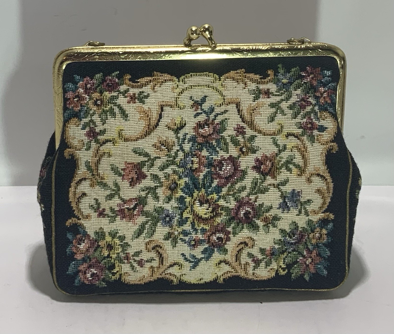 Vintage Petit Point Floral Needlepoint Tapestry Purse Handbag