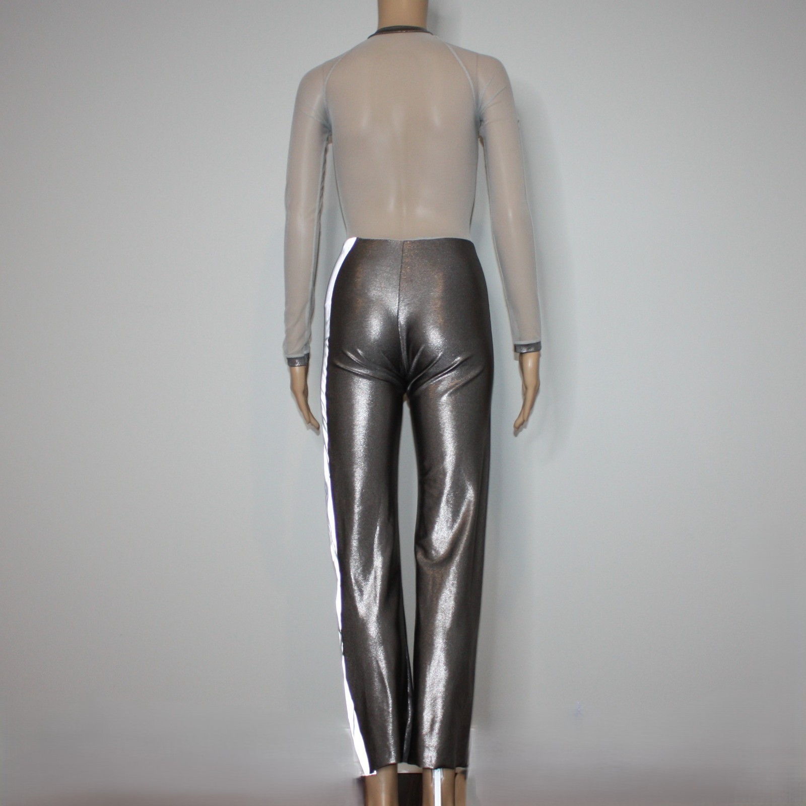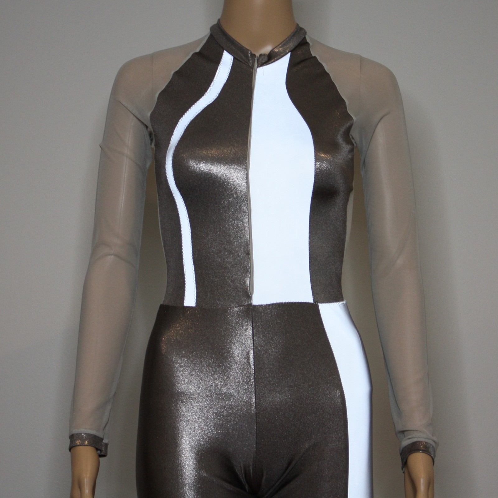 как выглядит Girls Custom Dance Costume Edgy One Piece Unitard in Silver Metallic size 12-14 фото