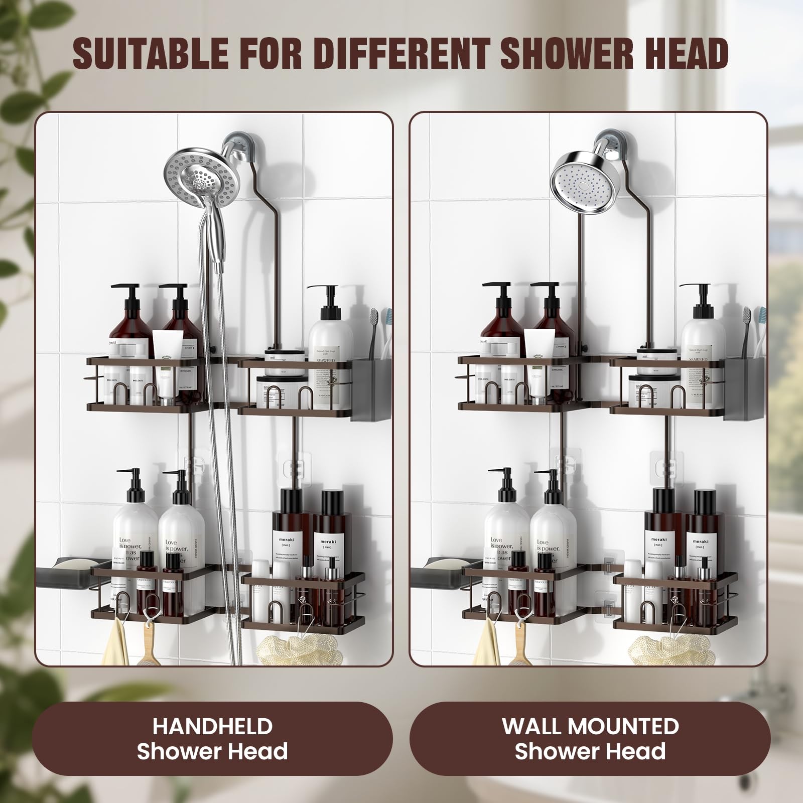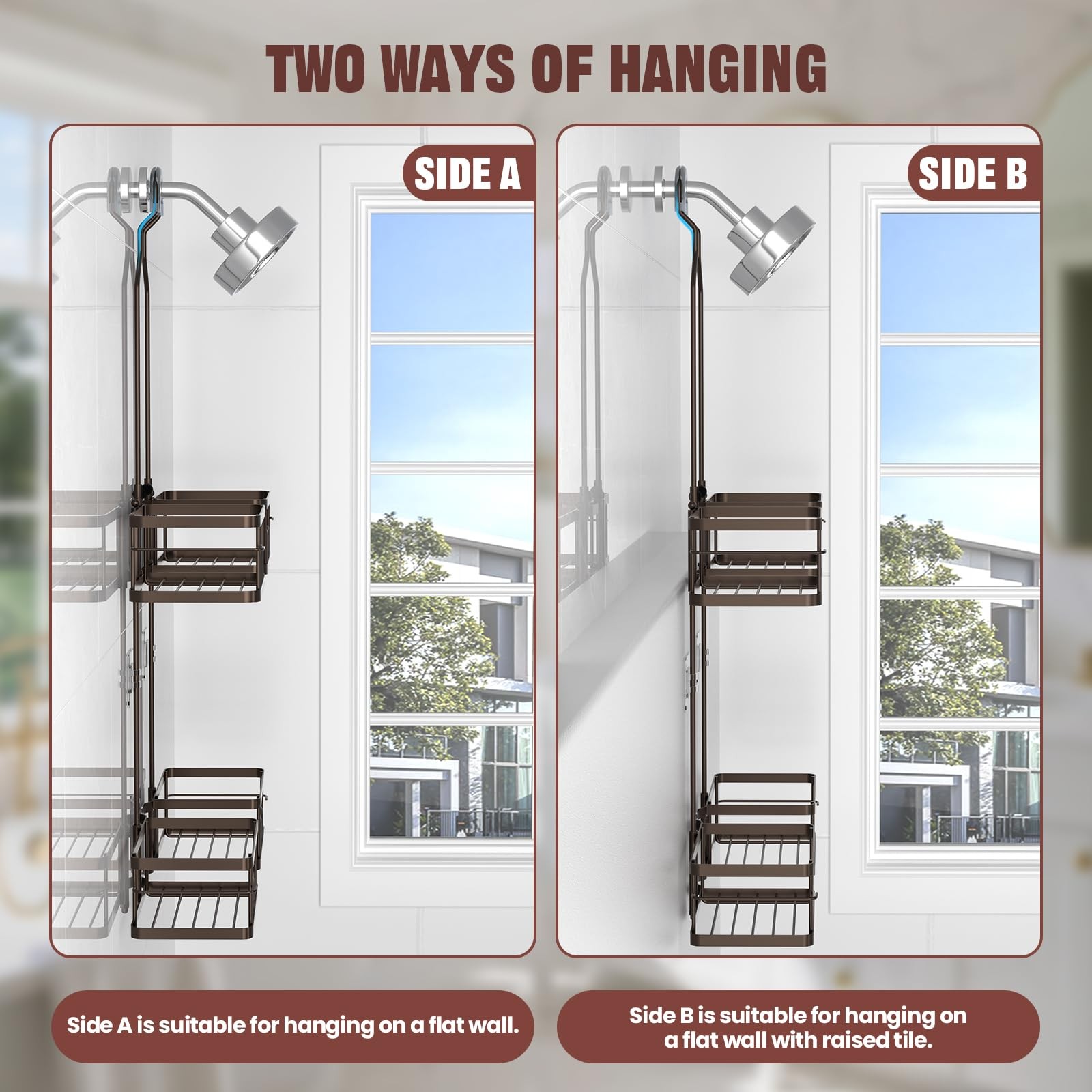 REINHARDT Adjustable Rustproof Hanging Shower Caddy for Handheld Showers