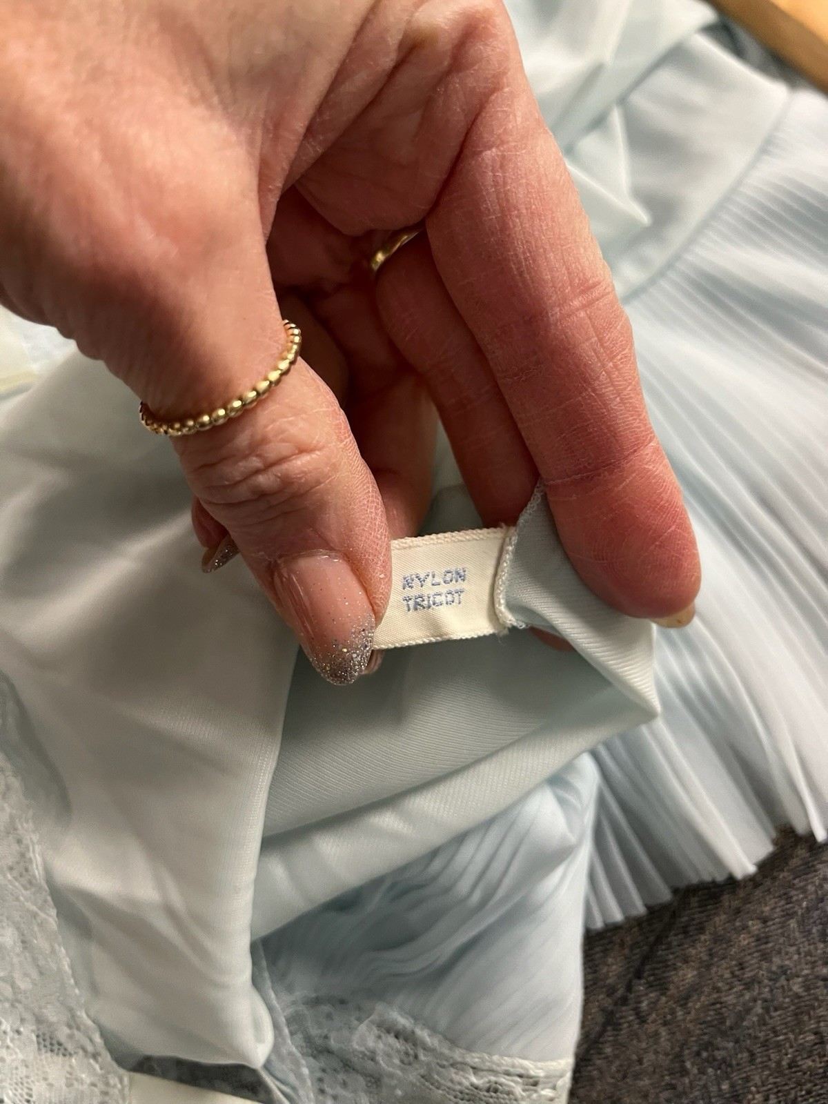 как выглядит VTG Vanity Fair Mid Length Blue Satin Slip Dress Nylon Nightgown Women
