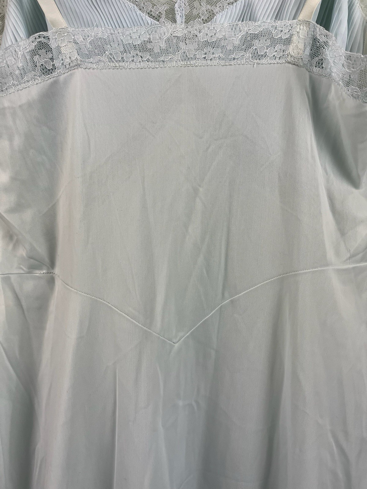 VTG Vanity Fair Mid Length Blue Satin Slip Dress Nylon Nightgown Women's Sz 34