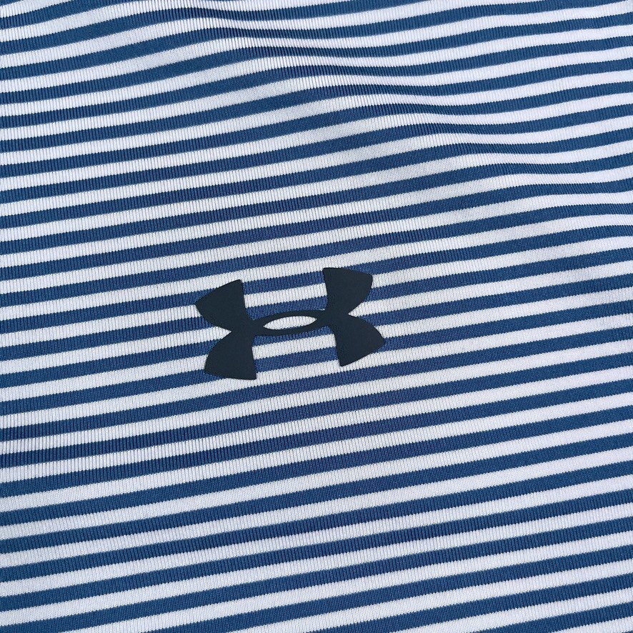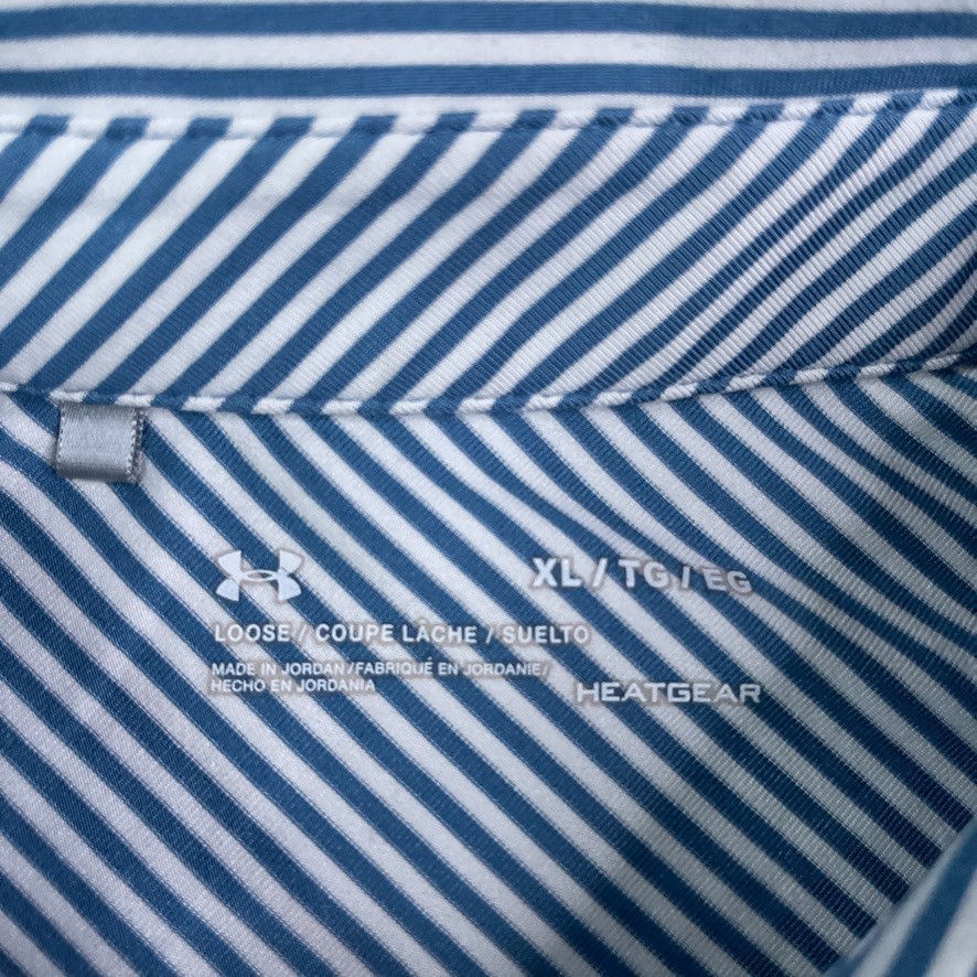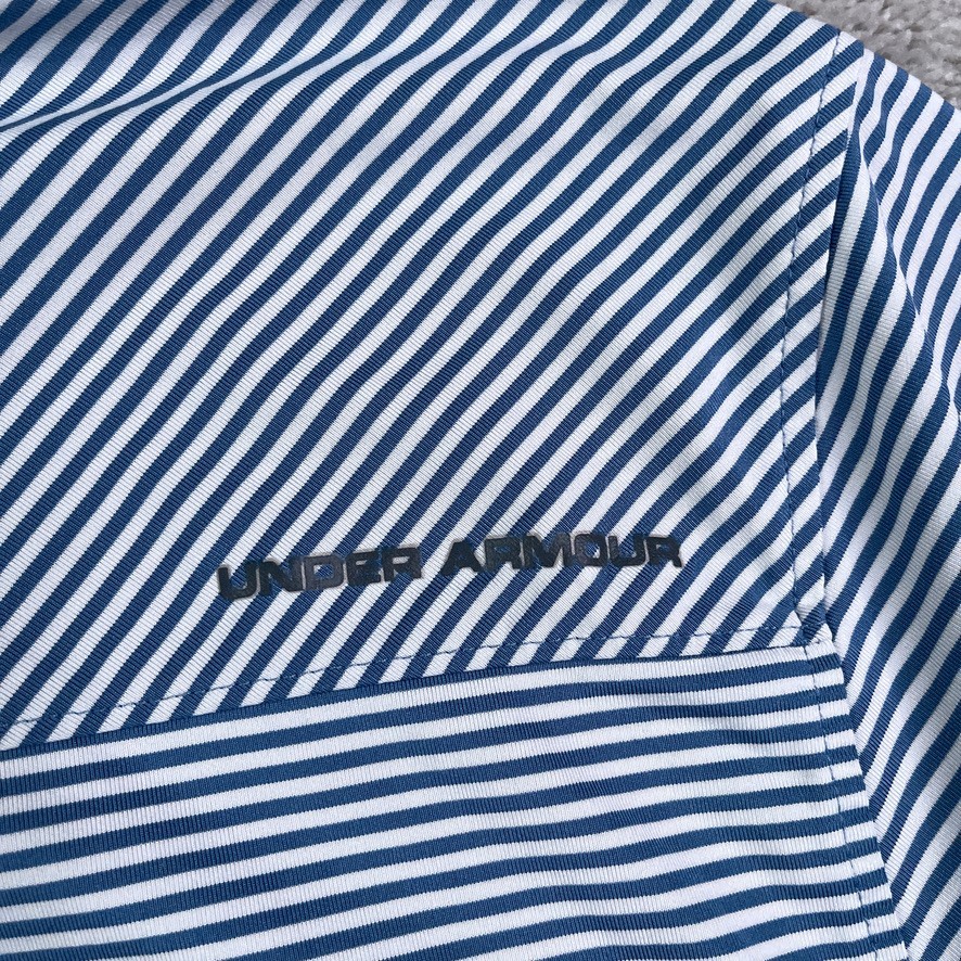 Under Armour Polo Shirt Mens XL Blue White Stripes Performance Golf Heat Gear