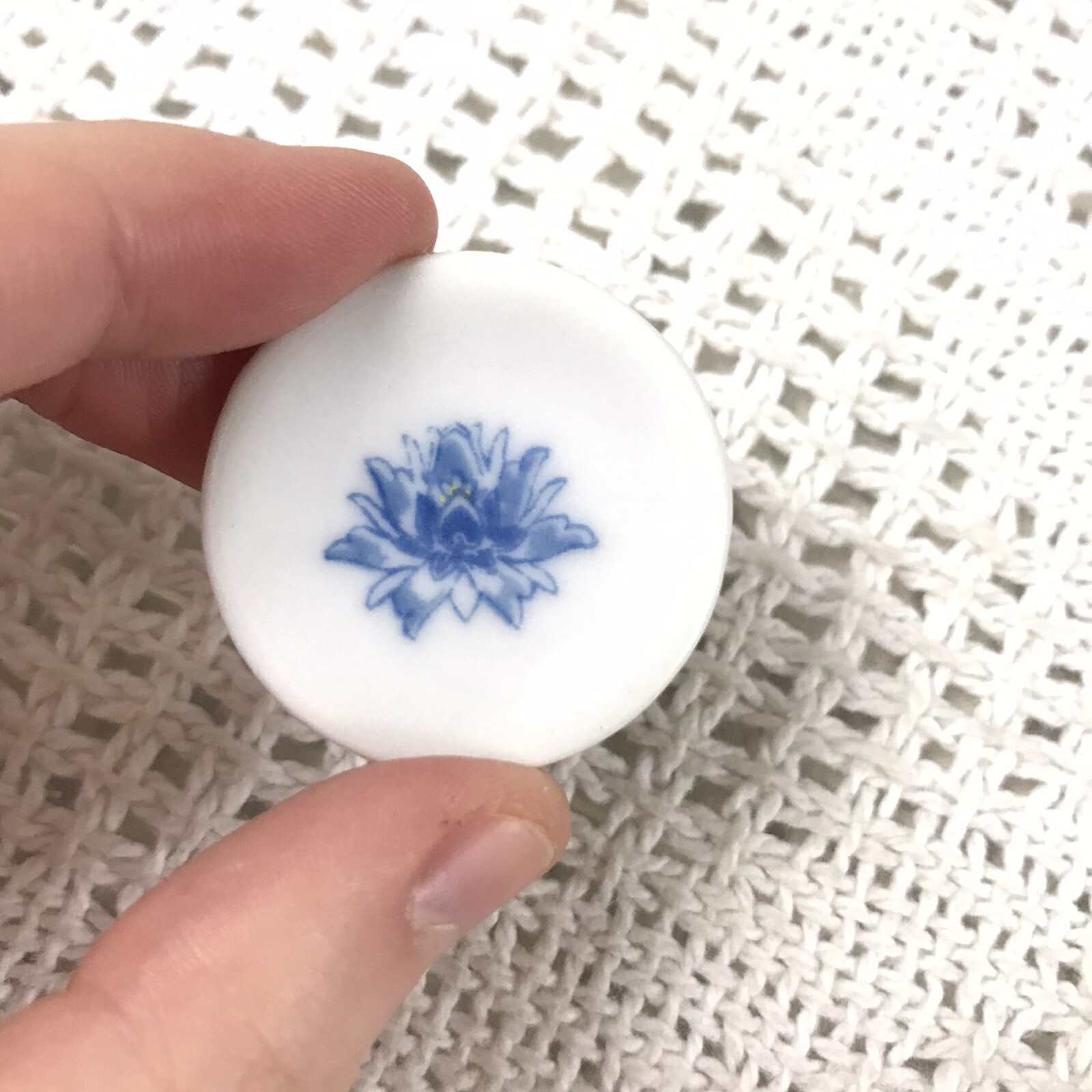 Miniature Tea Set Blue Lotus 6pc Glass Fairy Garden Doll House Shadow Box