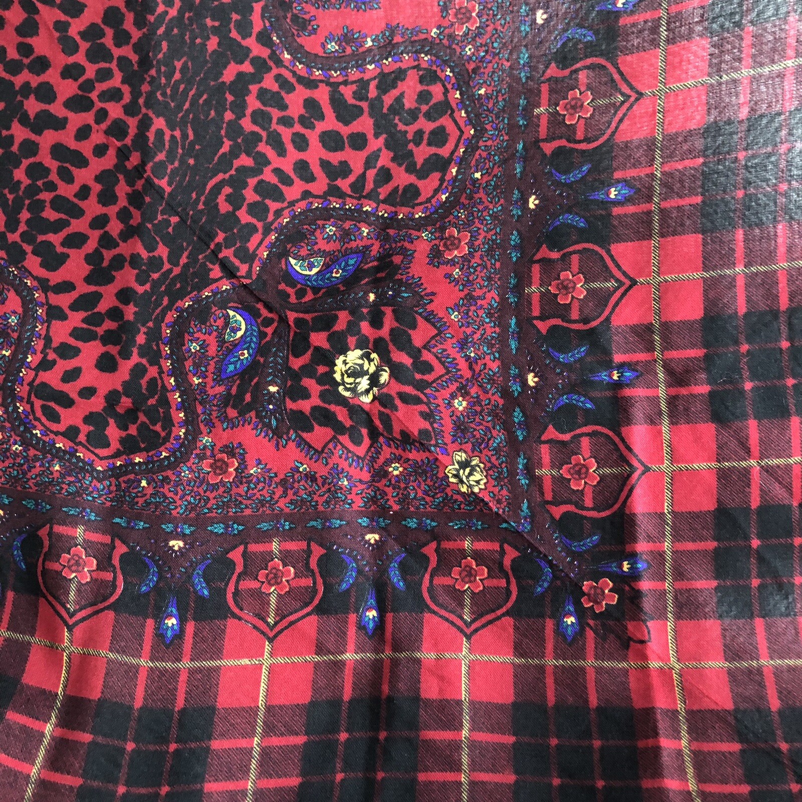 Vintage Glentex Scarf Acrylic Japan Pink Leopard Cheetah Plaid Paisley Print EUC