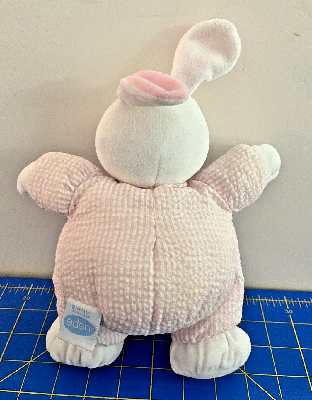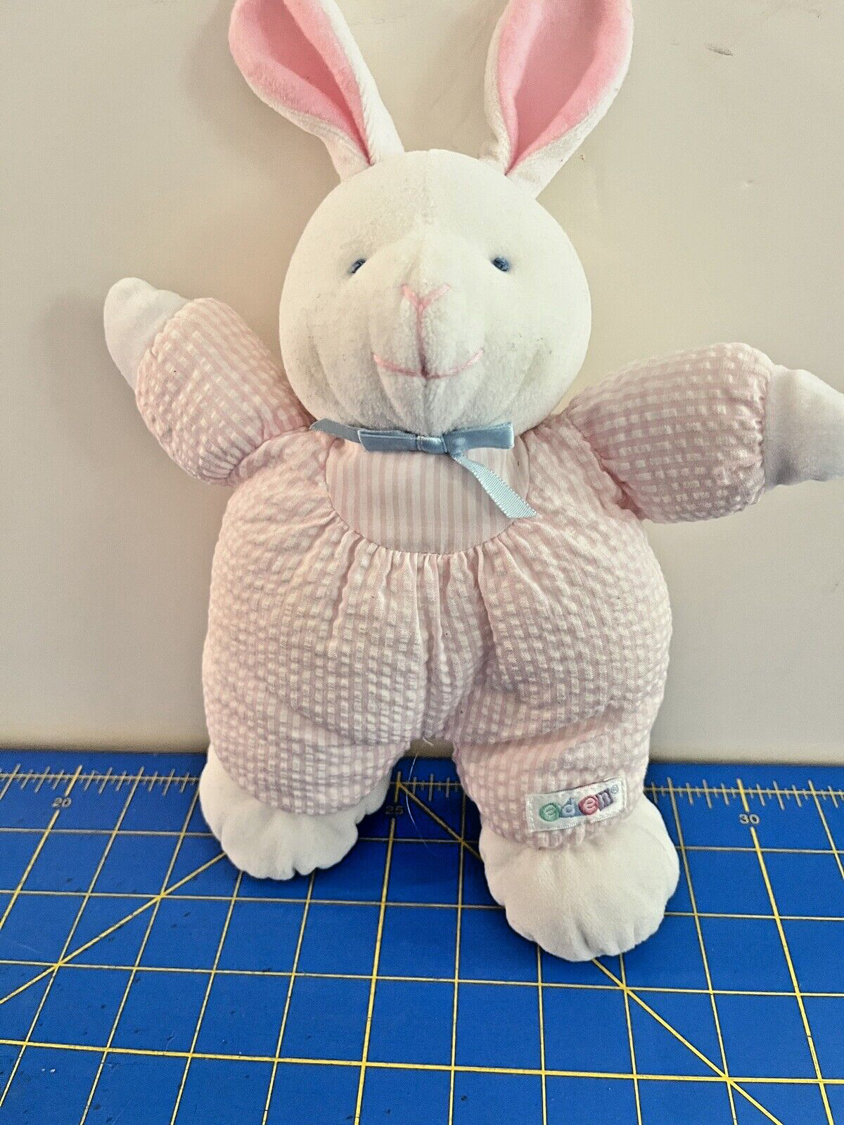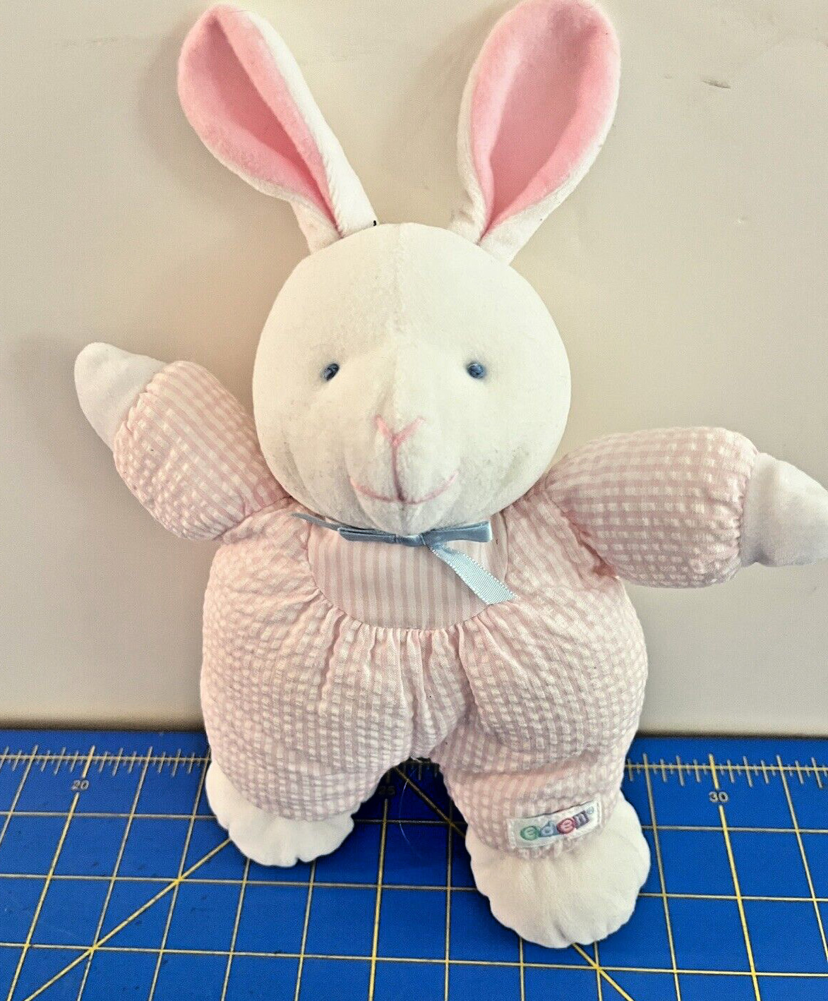 как выглядит Eden Bunny Plush Pastel Gingham Terry Pink Stuffed Animal Rattle Lovey 11" фото