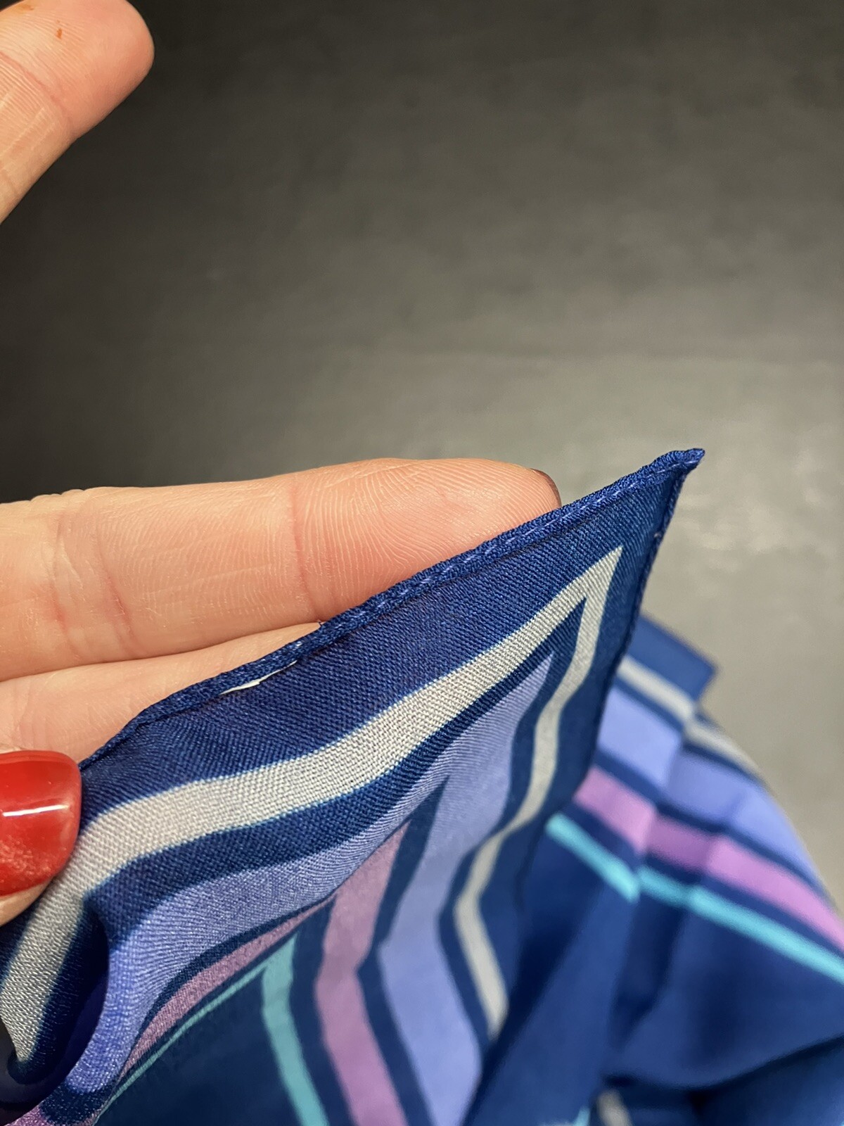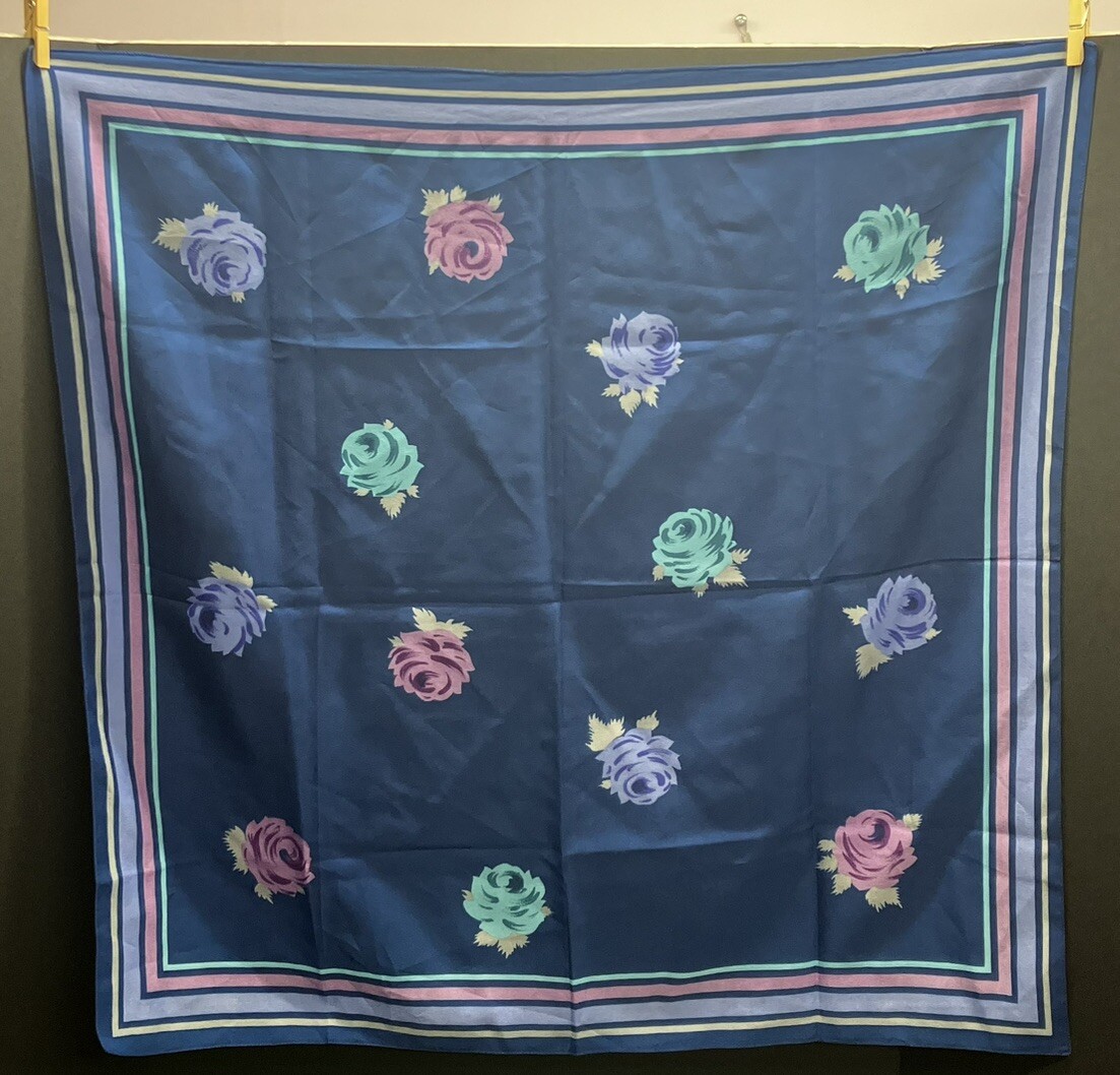 как выглядит Multicolor Roses Scarf Blue Pink Purple Striped Edge Floral Square Vintage 29in фото